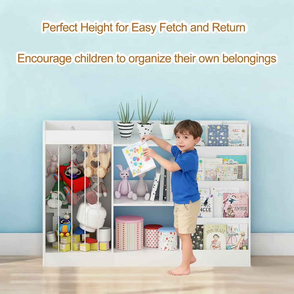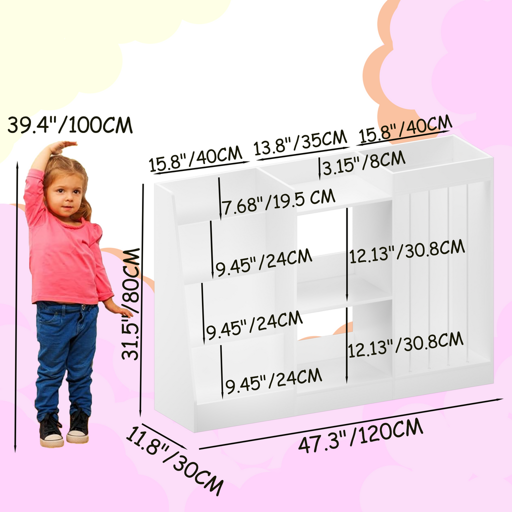 - Effortless Browsing, Easy Book Selection: 47.3'L x 11.8'W x 31.5'H inches, the perfect size for little ones. With book covers facing forward, this kids' bookshelf lets children easily identify and independently select books with minimal help