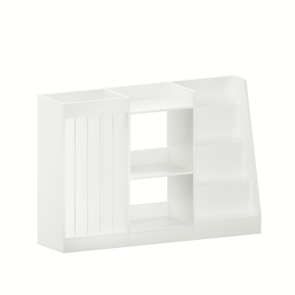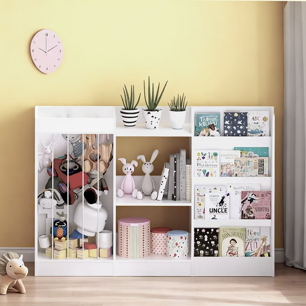 - 3-in-1 Design: This bookshelf for kids combines a stuffed animal organizer, 3-tier wooden toy shelf, and 4-tier stepped bookshelves into one versatile unit. It offers ample space to store books and neatly organize toys, keeping the room tidy and clutter-free