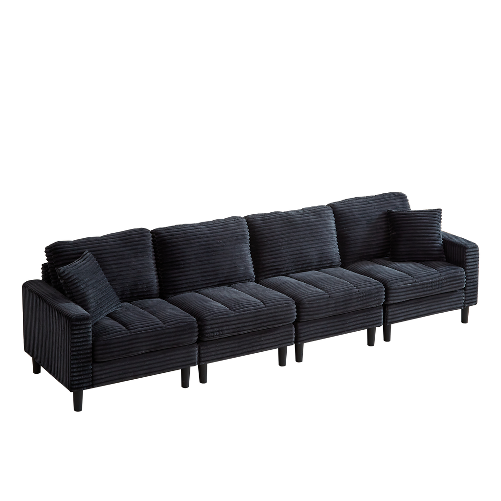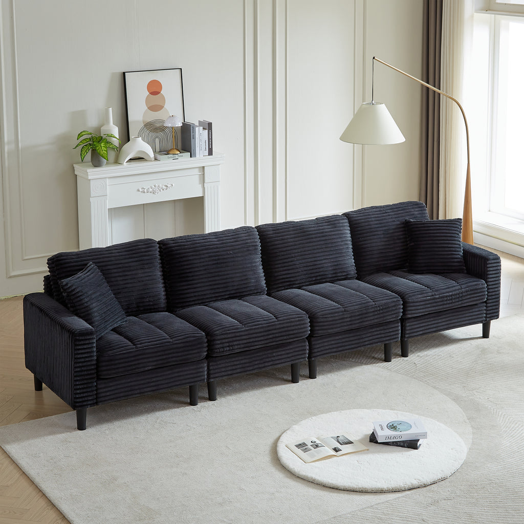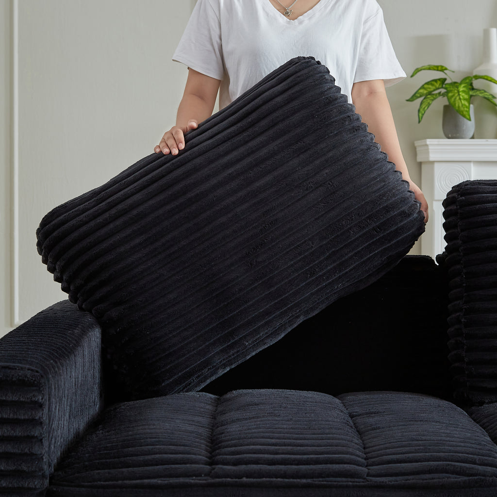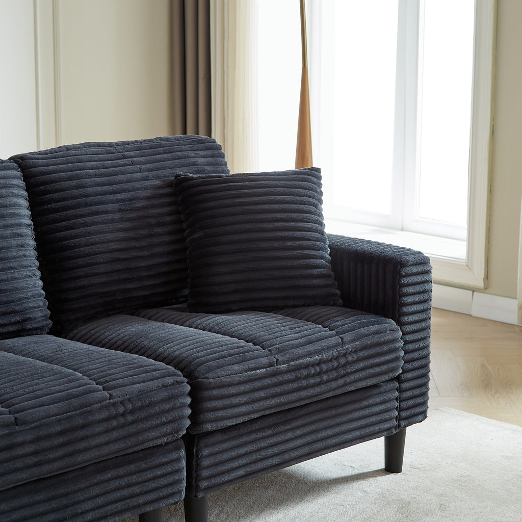 • This living room combo sofa is made of corduroy and filled with thick high-density foam, providing superb comfort and support for you, your family and guests to enjoy a wonderful day and night. The sofa comes with 2 pillows for extra support.