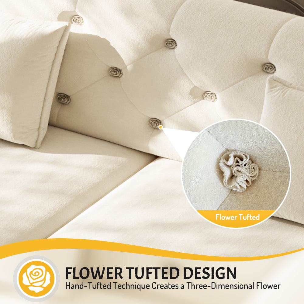 - ARTISTIC FLOWERS TUFTING: Our sofa adorned with elegant flowers that bring custom artistry to your space. The flowers blossom gently on the cushions, highlighting the sofa's plush comfort while adding dimensional texture and romantic charm to the room.