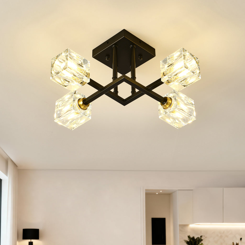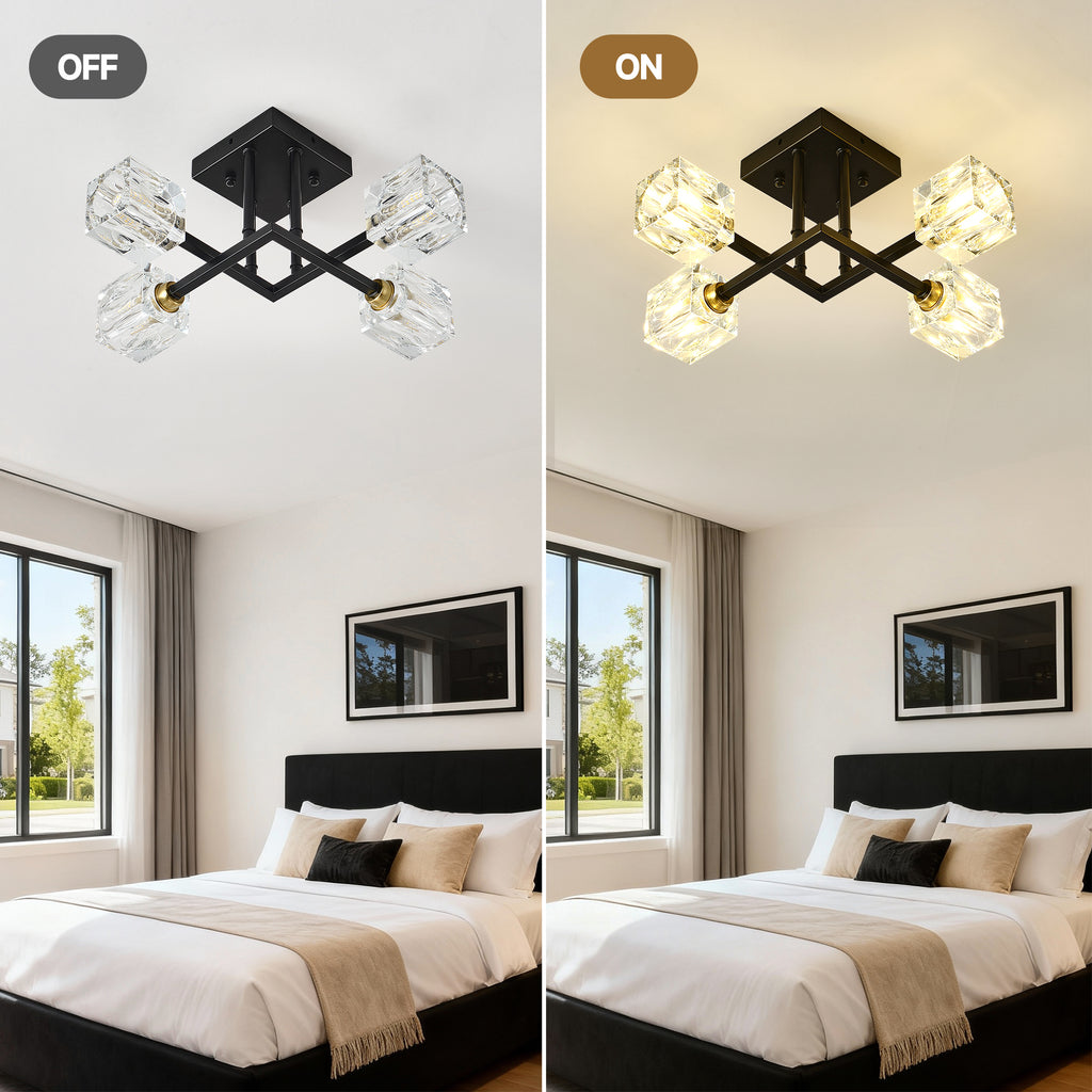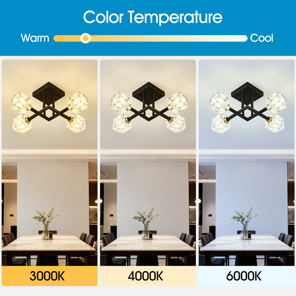 • 【E26 Standard Medium Base- Bulb Requirements】 Semi flush ceiling lights are perfect for accent and ambient lighting.The farmhouse pendant light fixtures feature compatibility with 4 x E26 60W per bulbs max (Not Included Bulb) allows for versatile lighting options,Please choose the bulb you like to decor your dream home;