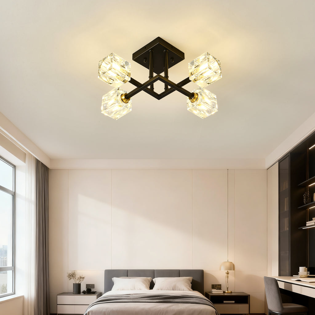 Modern Luxurious Crystal Ceiling Light, 4 Lights (BO INCLUDED Bulb) Modern Crystal Ceiling Light for Dining Room, Pendant Lamp Ceiling Lighting for Living Bedroom Hall Balcony --Matte Black