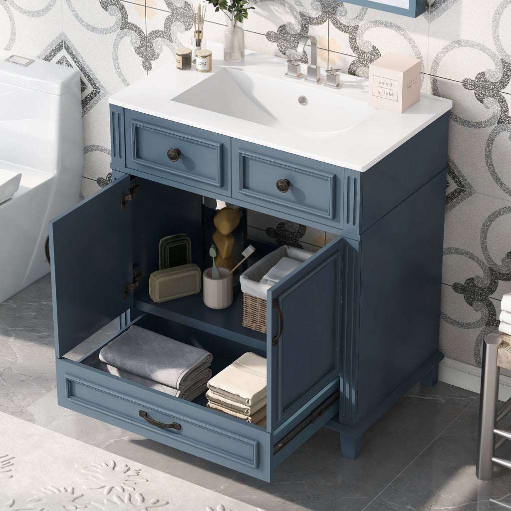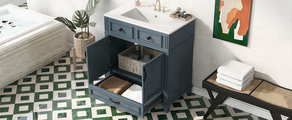 - [ Multi-Purpose Cabinet & Concealed Storage ] Are you looking for stylish and functional storage solutions for your bathroom? Our bathroom vanity provide ample space for all your toiletries and bathroom essentials. The combination of the cabinet body and the drawer perfectly stores all kinds of bathroom products and keeps the necessities away from water stains and dust. Soft-close doors and drawer fronts feature a water-resistant paint finish for durability.