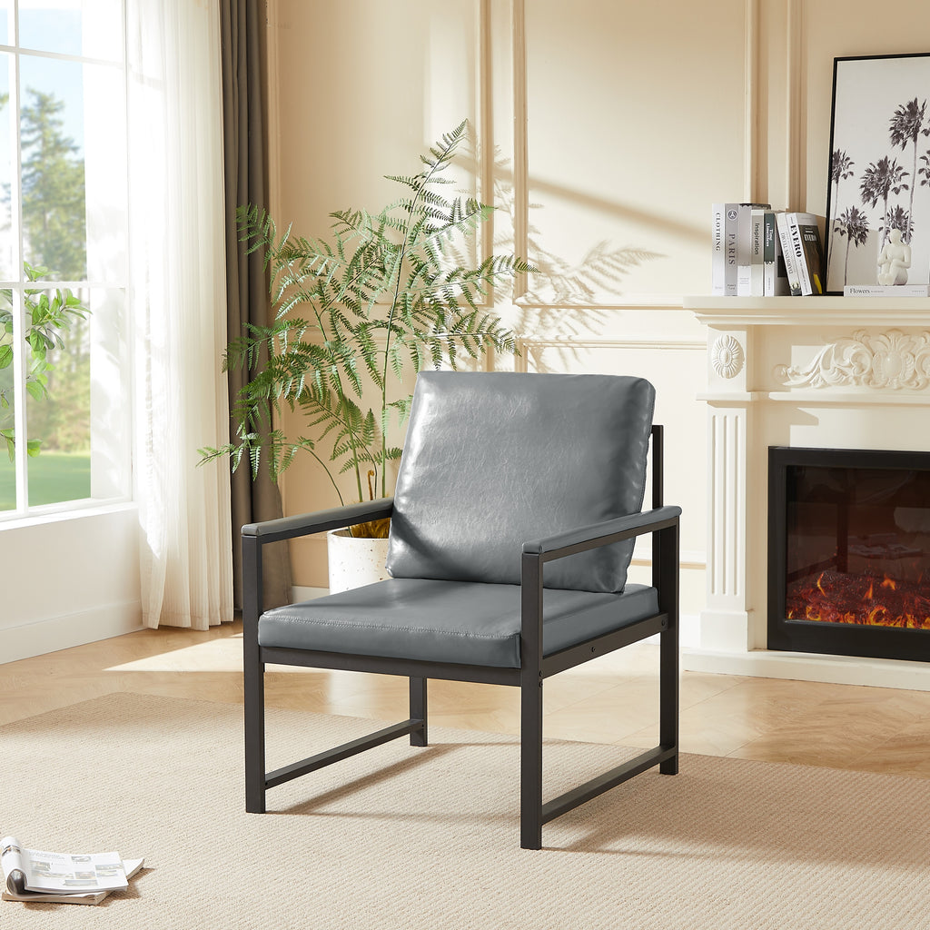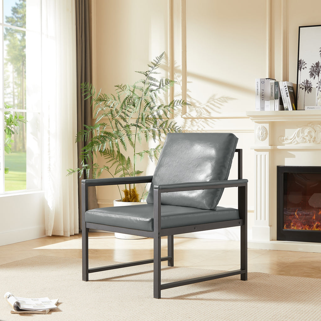 - Faux Leather-padded Armrest & Loose Back Pillow: Our faux leather accent chair is carefully crafted in many details. The metal armrest is finished with padded faux leather for resting your arms comfortably and adding more aesthetic details. A loose back pillow allows better airflow, you won’t feel sweated after a long time sitting.