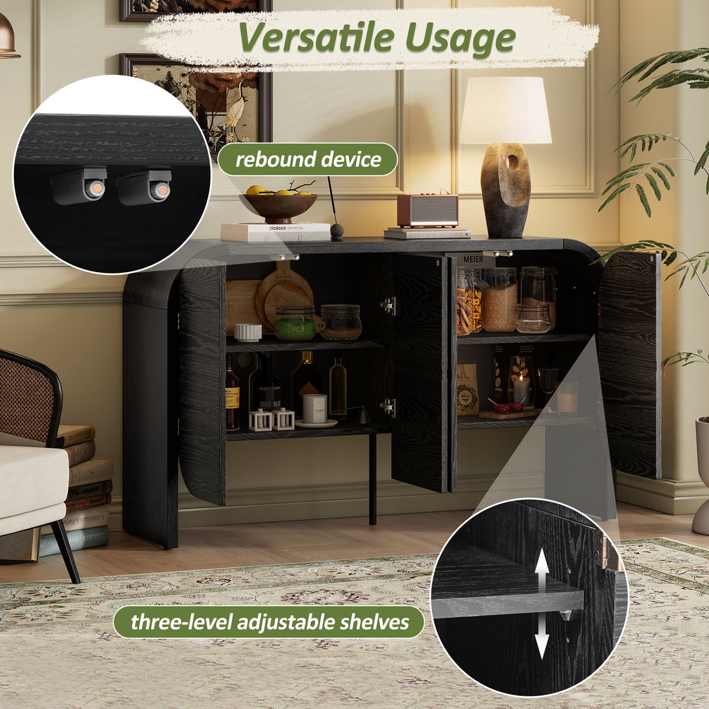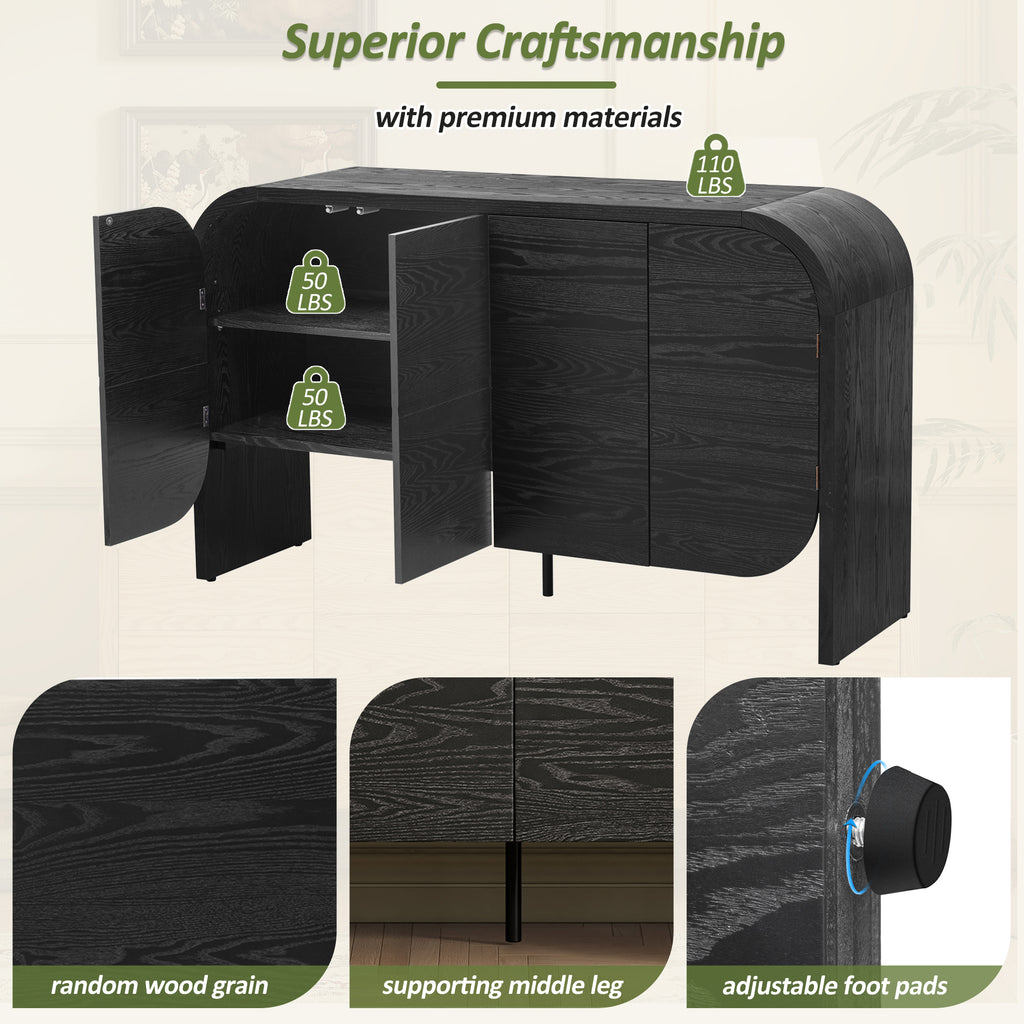 TREXM Buffet Cabinet with Storage, Wood Sideboard Cabinet with Curvy Edge, 4 Doors Retro Credenza Storage Cabinet with Adjustable Shelves for Living Room, Kitchen (Black)