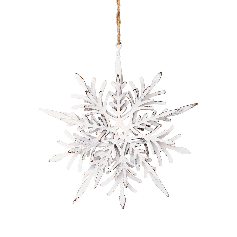 - This hanging ornament is made from strong iron and is in the shape of a unique snowflake.