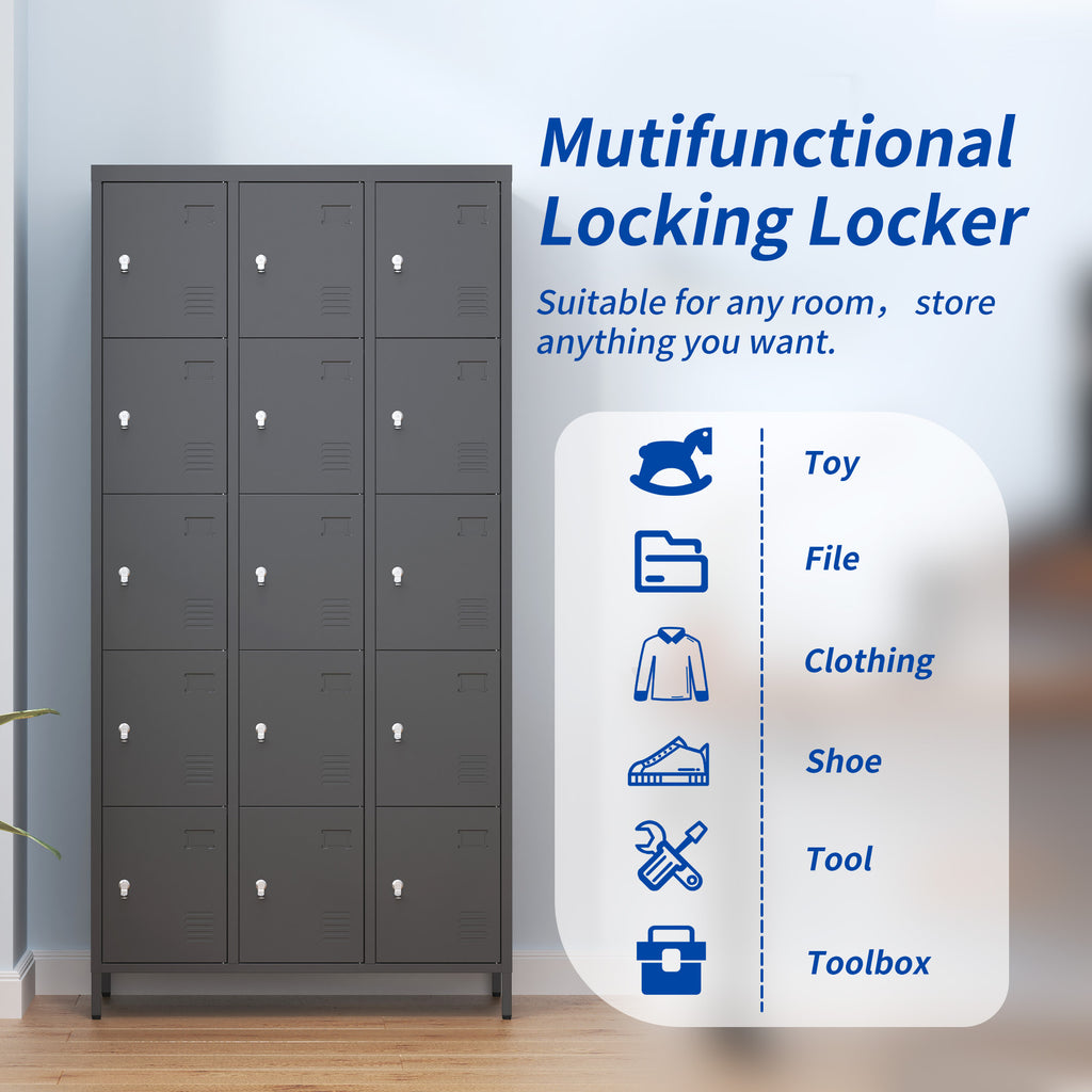 - Spacious Storage Compartments: 15 large compartments provide ample space for clothes, shoes, and other belongings. Perfect for employee lockers or home storage.