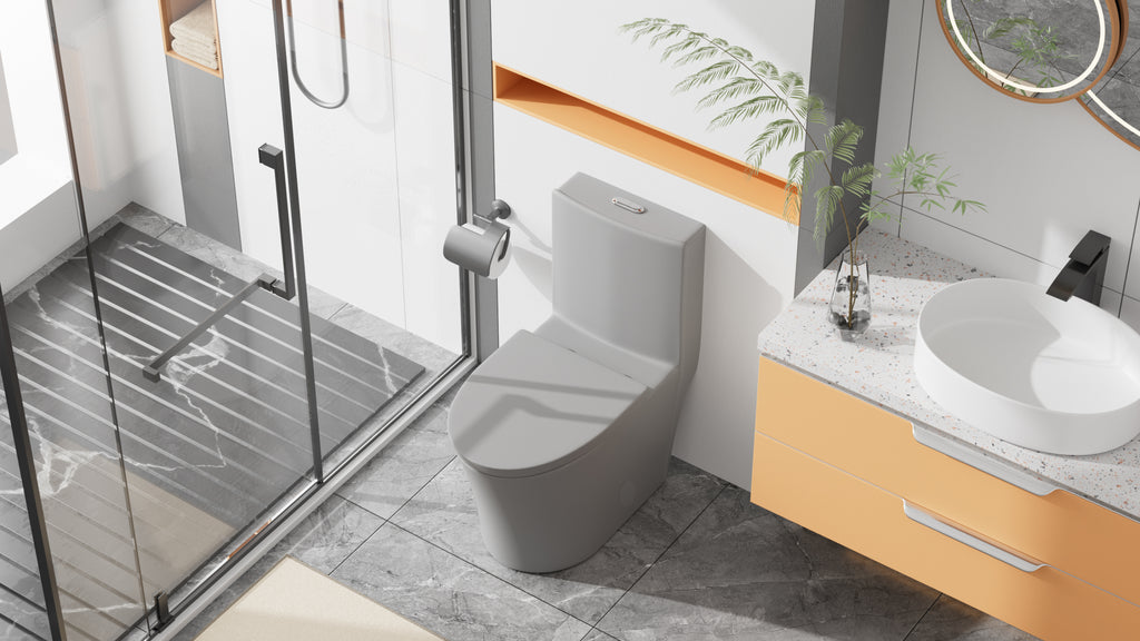 - Modern matte grey finish: The modern toilet with elegant design and trendy color perfectly complement your contemporary grey bathroom decor.