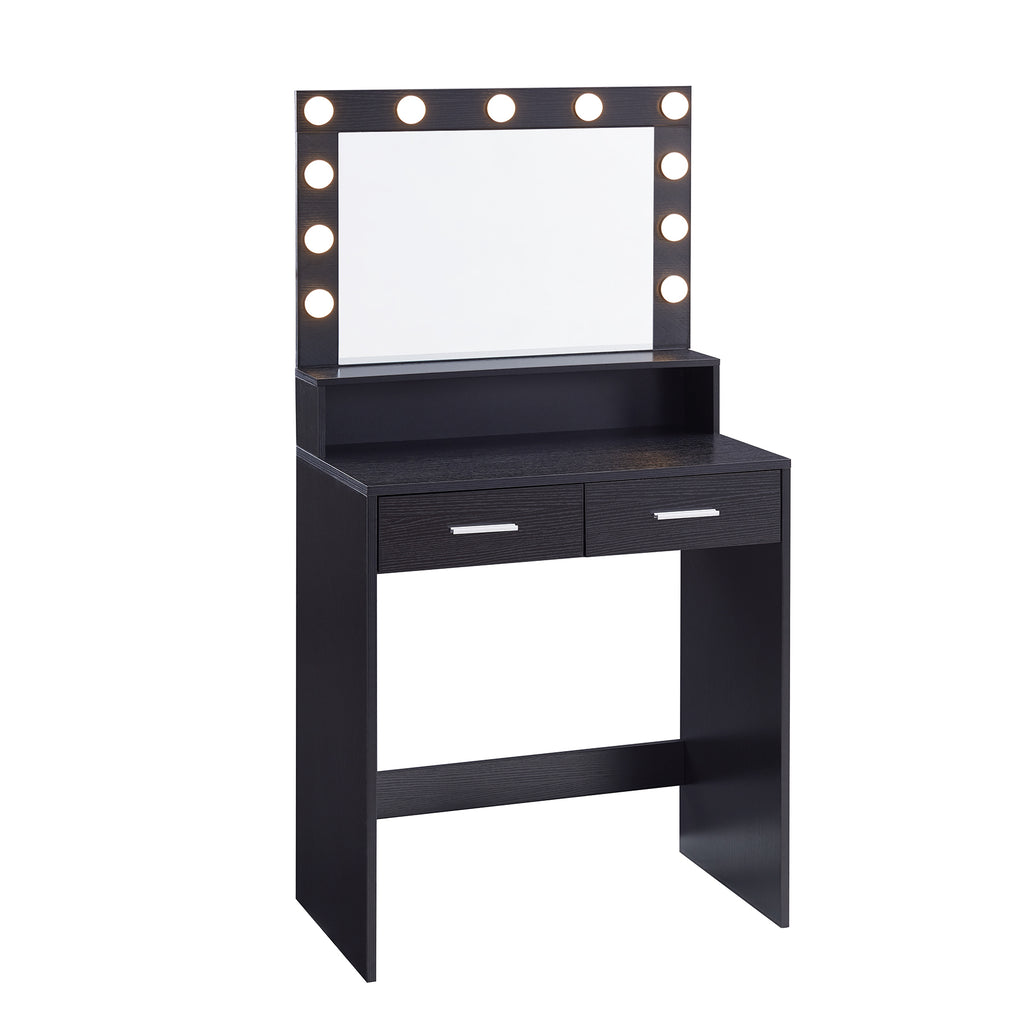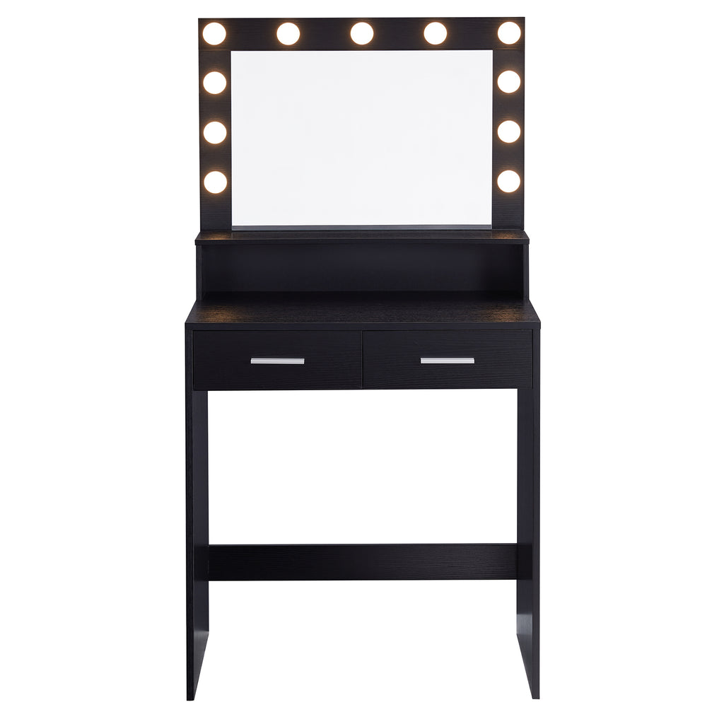 Vanity Desk with Mirror and Lights, Dressing Table with Large Drawer, 2 Level Storage Dresser & 3 Lighting Modes Adjustable Brightness, Suitable for Bedroom(Black)