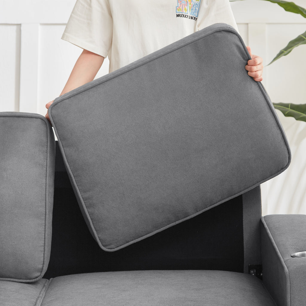 Modern Snowfleece Fabric 3-Seater Sofa with Cup Holders in Gray, 83.86'