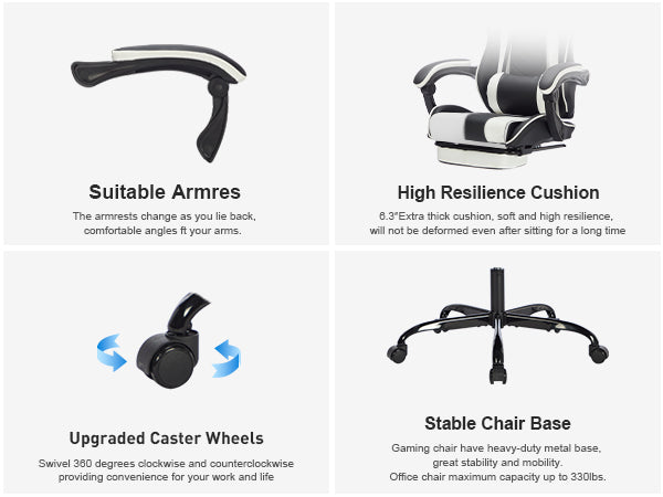 • Excellent service: About any quality problems of Game Chair Pu Leather Computer Desk Chair, please feel free to contact the customer service team for after-sales service.