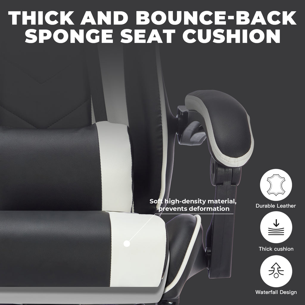 Gaming Chair with Footrest, Ergonomic Computer Chair with Headrest and Lumbar Support, Breathable Material Height Adjustable Video Game Chairs for Adults, Black White
