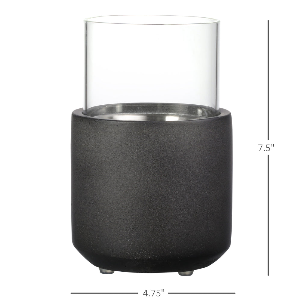 Tabletop Fireplace, Mini Concrete Ethanol Fire Bowl with Lid, Burns up with Liquid Alcohol and Solid Tablet Alcohol, Dark Grey