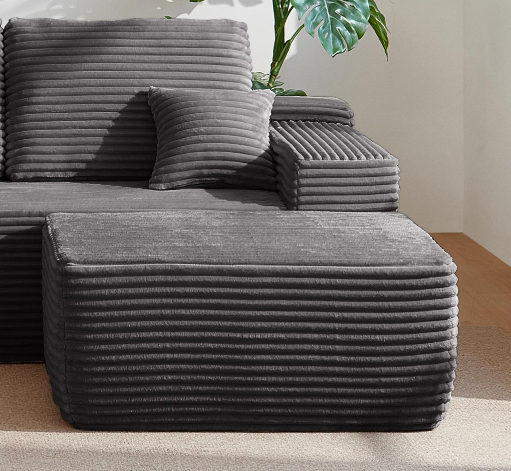 • Modular Sectional Sofa:This sectional sofa featuring a sleek design, clean lines, and high-quality plush corduroy Fabric,This sectional set maximizes space when placed against a wall,this corner sofa effortlessly adds a timeless and sophisticated touch to your home. Designed to be the focal point of attention, it's an ideal choice for elevating the ambiance of living rooms, apartments, and bedrooms.