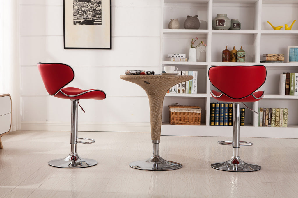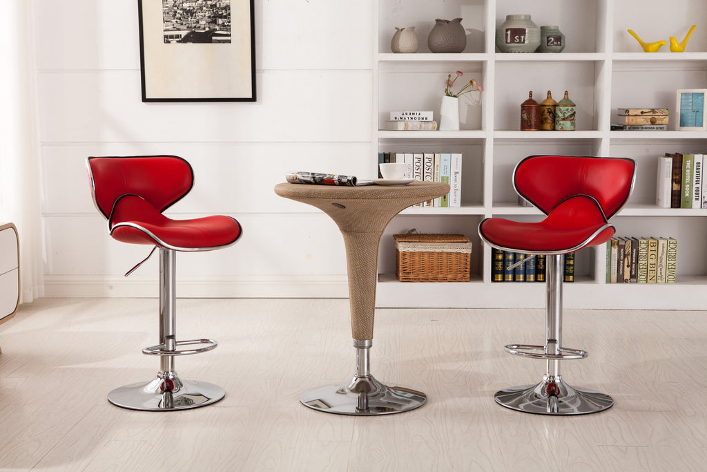 Masaccio Upholstery Airlift Adjustable Swivel Barstool with Chrome Base, Set of 2, Red