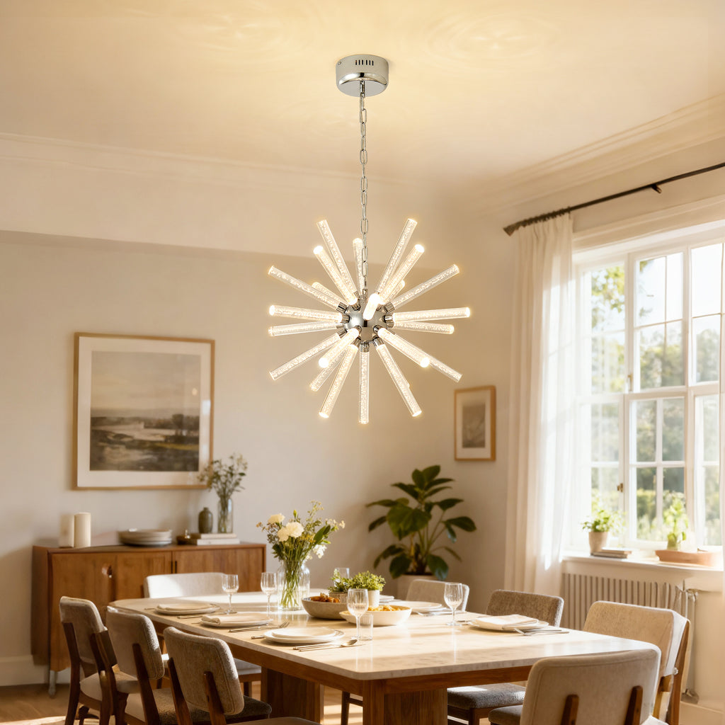 • ELEGANT DESIGN: Contemporary style is updated with a trending Sliver finish. The Bubble Pillar pendant with dramatic add value to your house decoration .