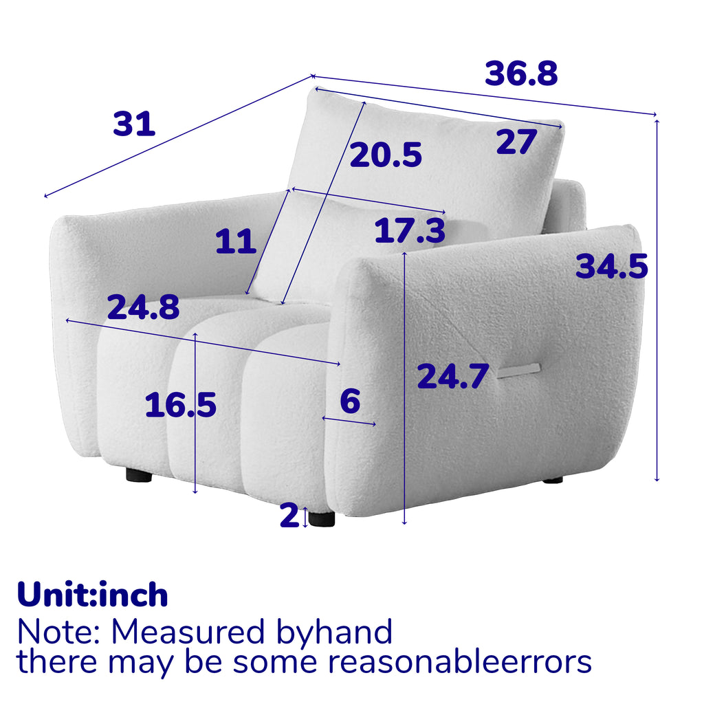 - Sturdy solid wood frame, high-grade breathable teddy fleece fabric, filled with high-quality sponge, makes this sofa beautiful and comfortable, which can be perfectly matched with the living room, bedroom, home office and so on.