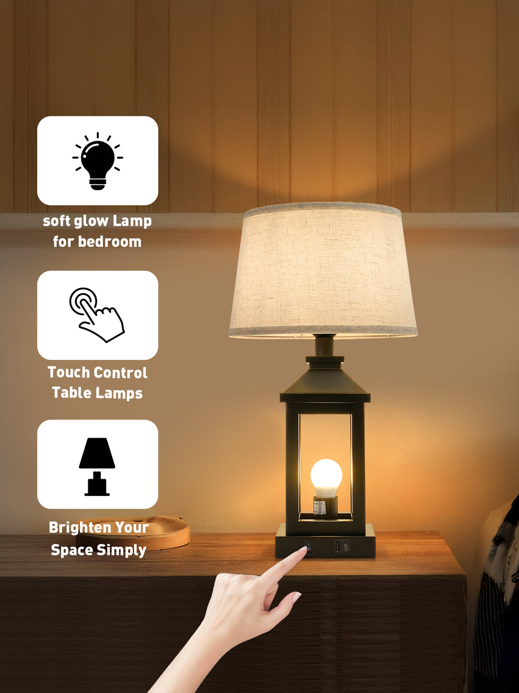- Upgraded USB C+A & AC Outlet: With built-in USB C + A ports and an AC outlet, this USB rustic lamp is a practical charging solution for your bedroom. Charge your devices effortlessly without the hassle of searching for outlets, making it an ideal addition to your farmhouse nightstand