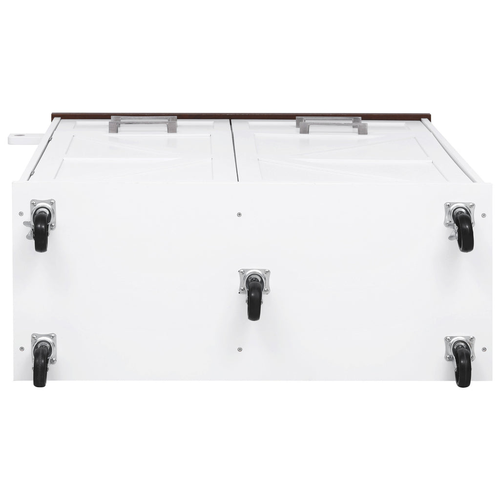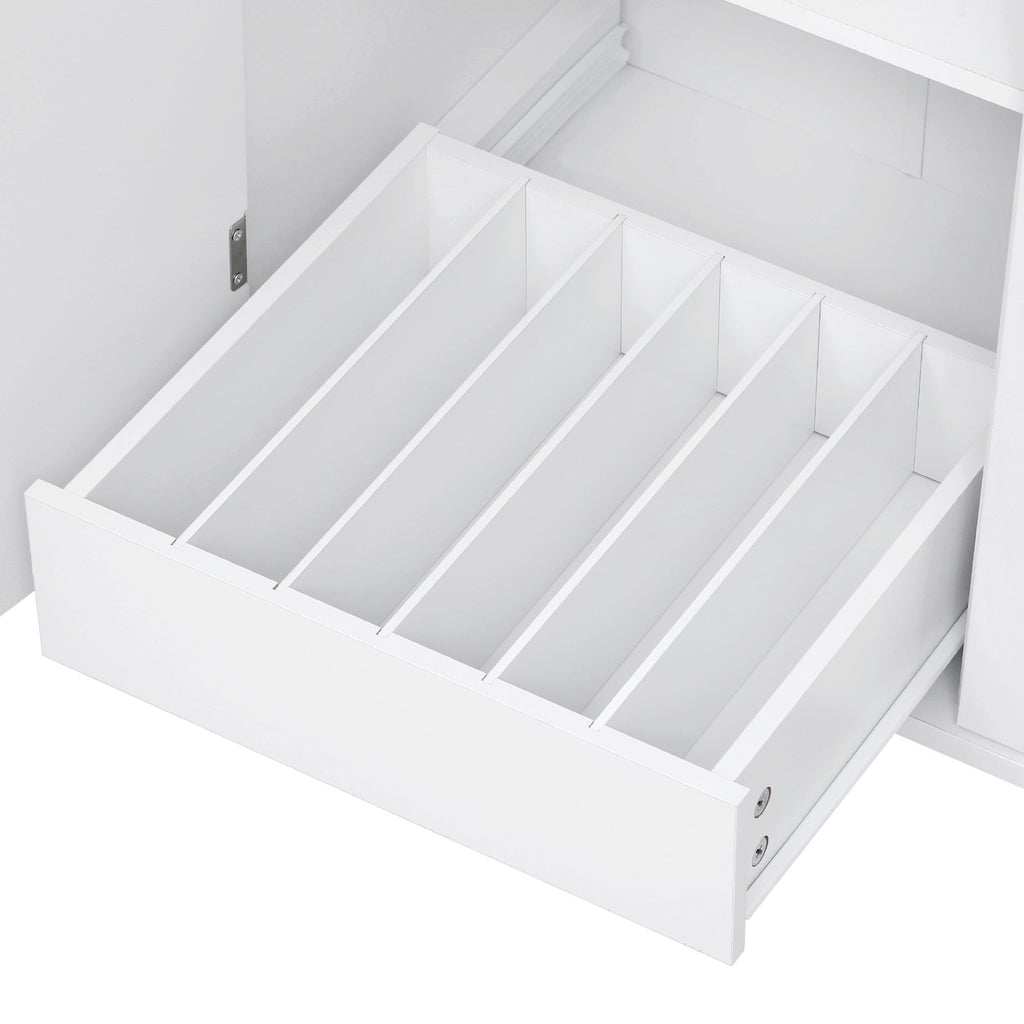 The garbage bin storage cabinet is a fantastic addition to your kitchen island. It can accommodate a 10-gallon trash can (not included), effectively concealing the trash and keeping the kitchen looking tidy while also preventing pets from knocking over the bins.