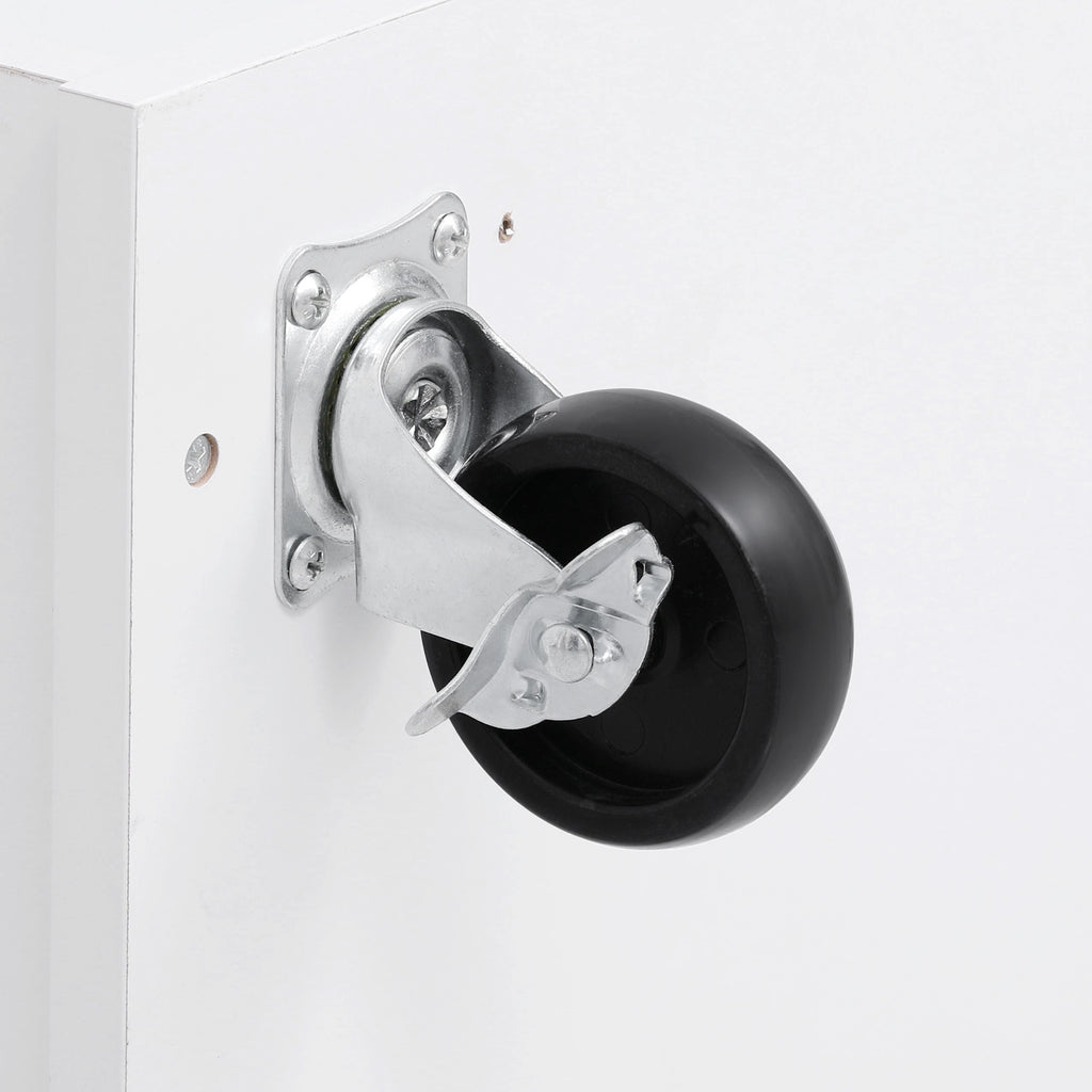This mobile kitchen island on wheels comes with a total of nine wheels that allow it to swivel and move in all directions. Among them, the left side cabinet has five wheels and two are lockable.