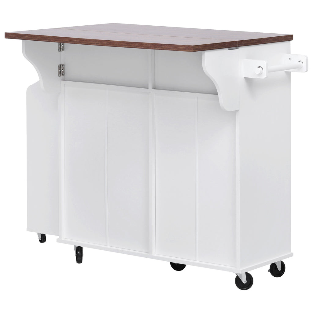 K&K 47.2' Farmhouse Kitchen Island with Drop Leaf, Kitchen Storage Island with Removable Side Racks, Two Drawers, Rolling Kitchen Cart on Wheels with Towel Rack, for Home, Kitchen, Dining Room, White
