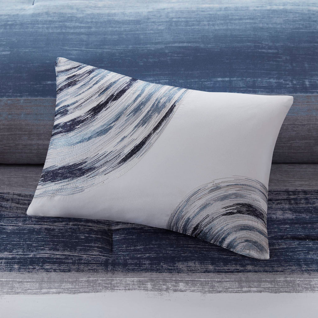 • A watercolor stripe print is beautifully displayed on the ultra-soft microfiber comforter.