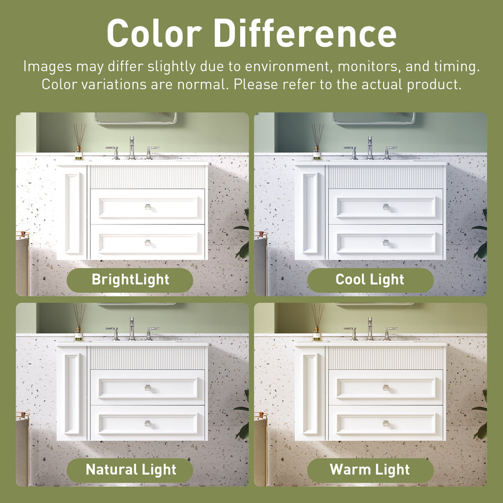 • Wall Mounted Bathroom Vanity:Because the floating bathroom cabinet is wall mounted, there are no legs or other parts around to clean. The underside of the vanity will also be easier to clean. This makes it easier to keep the bathroom vanity clean and tidy. Also, it takes up less floor space than traditional freestanding bathroom cabinet and is more space-saving.