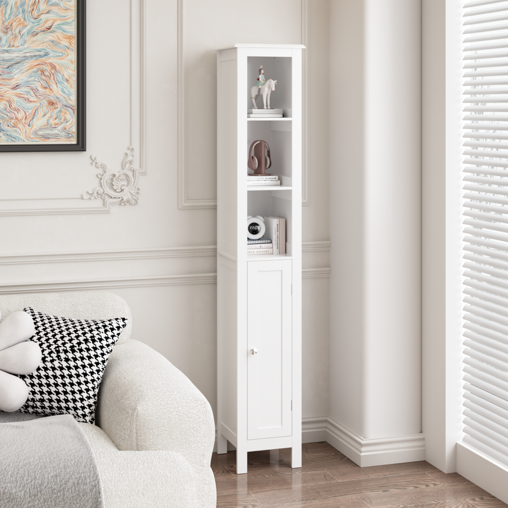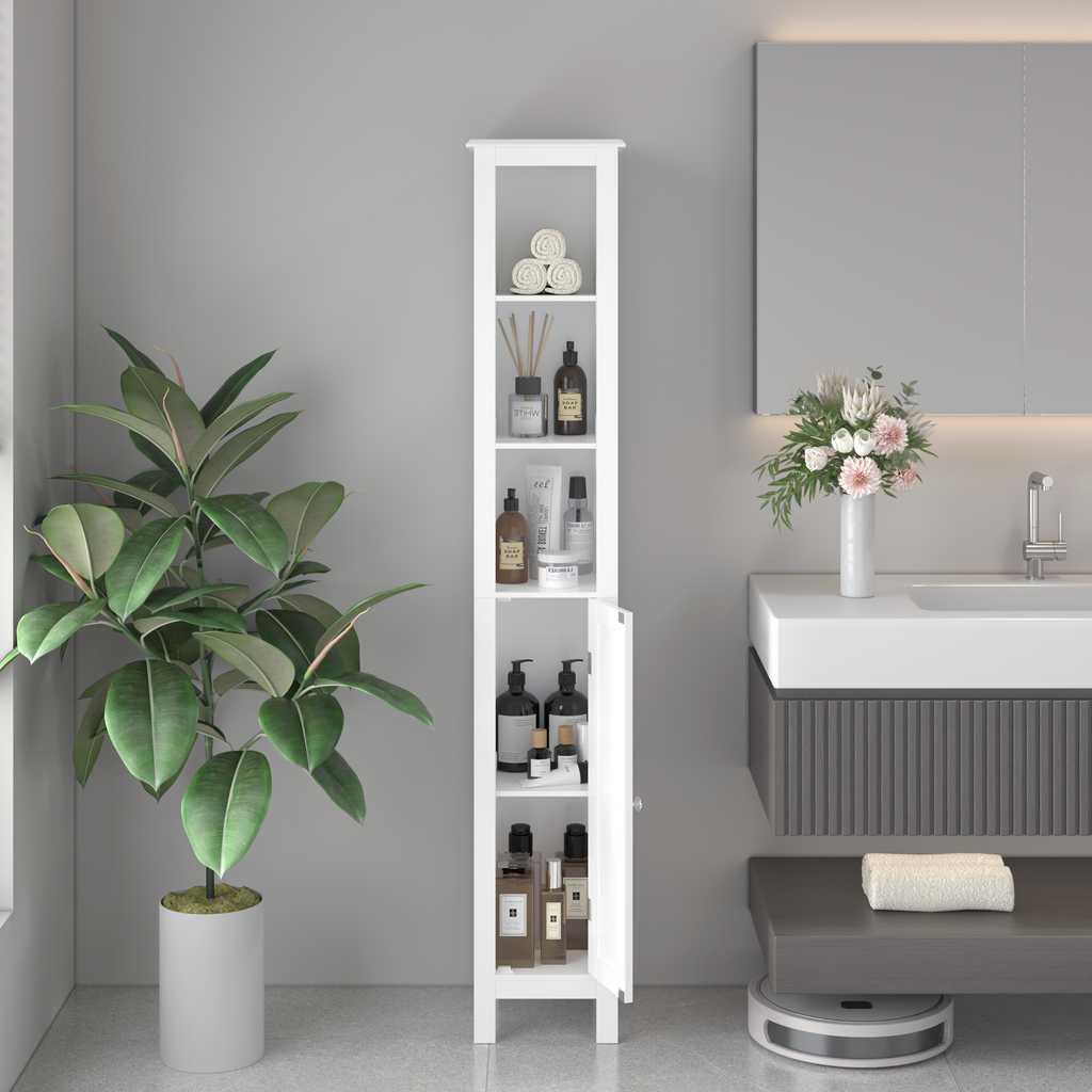 Slim Tall 66.92' White Bathroom Storage Cabinet with Adjustable Shelves, Anti-Tip Freestanding Cabinet for Small Spaces, Kitchen, Living Room, MDF