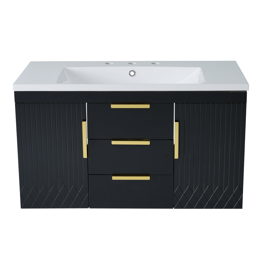 36'' Wall Mounted Bathroom Vanity with Resin Sink, Floating Bathroom Storage Cabinet with 2 Drawers, Solid Wood Bathroom Cabinet (Same as N710S236003B)