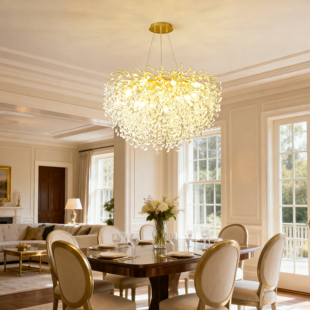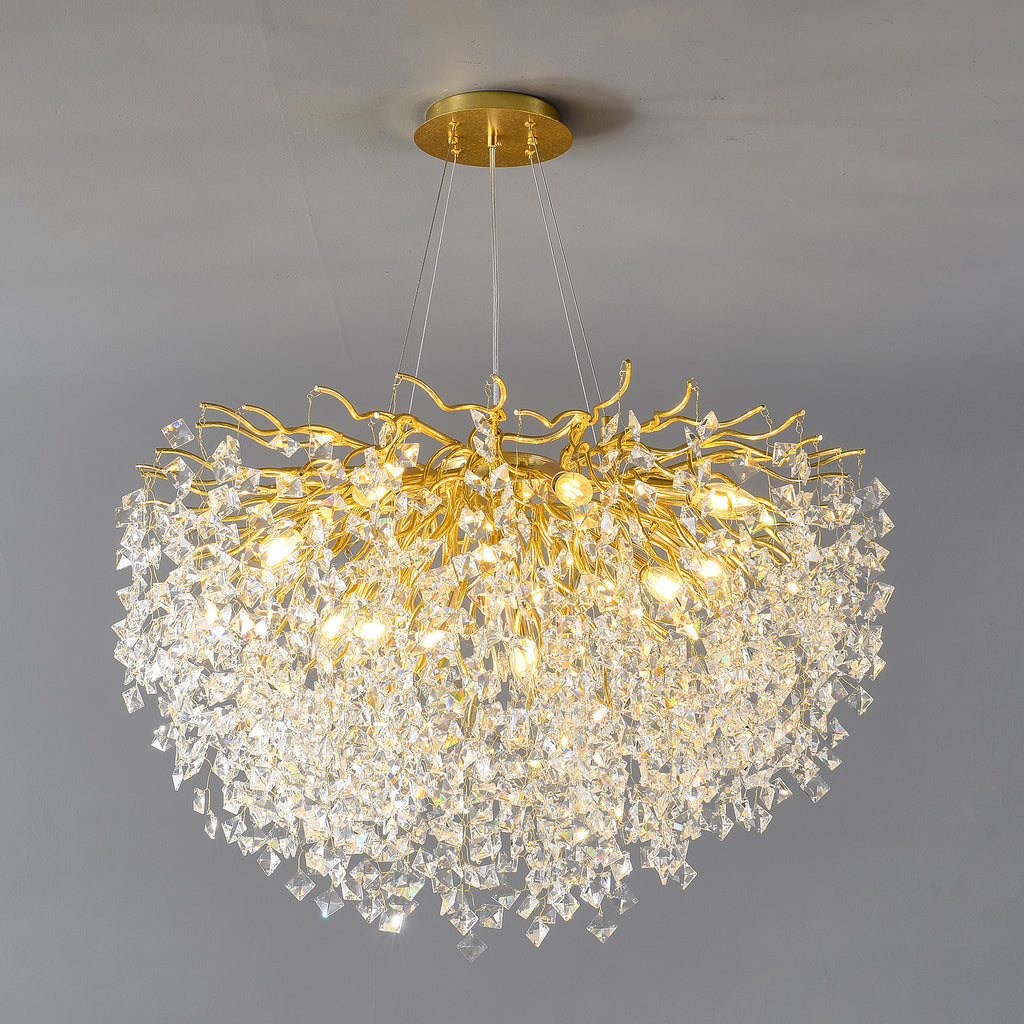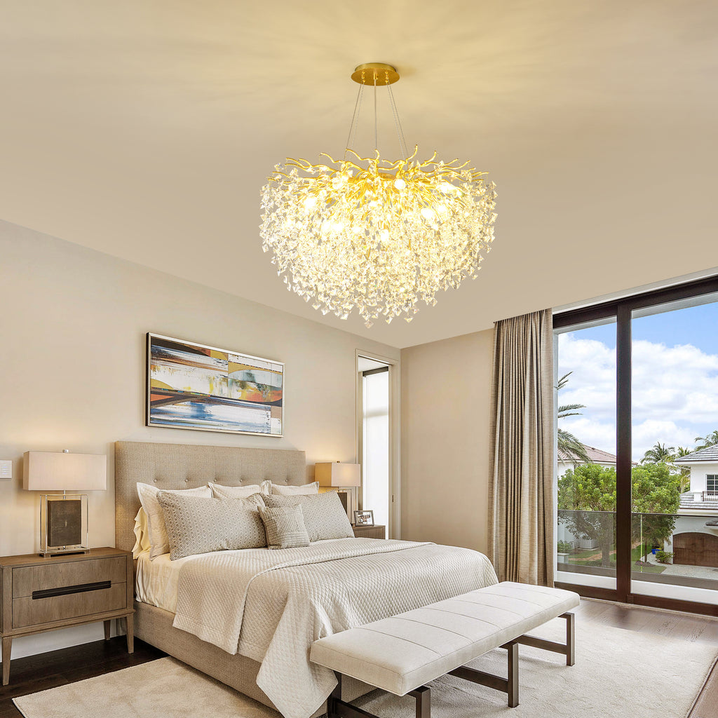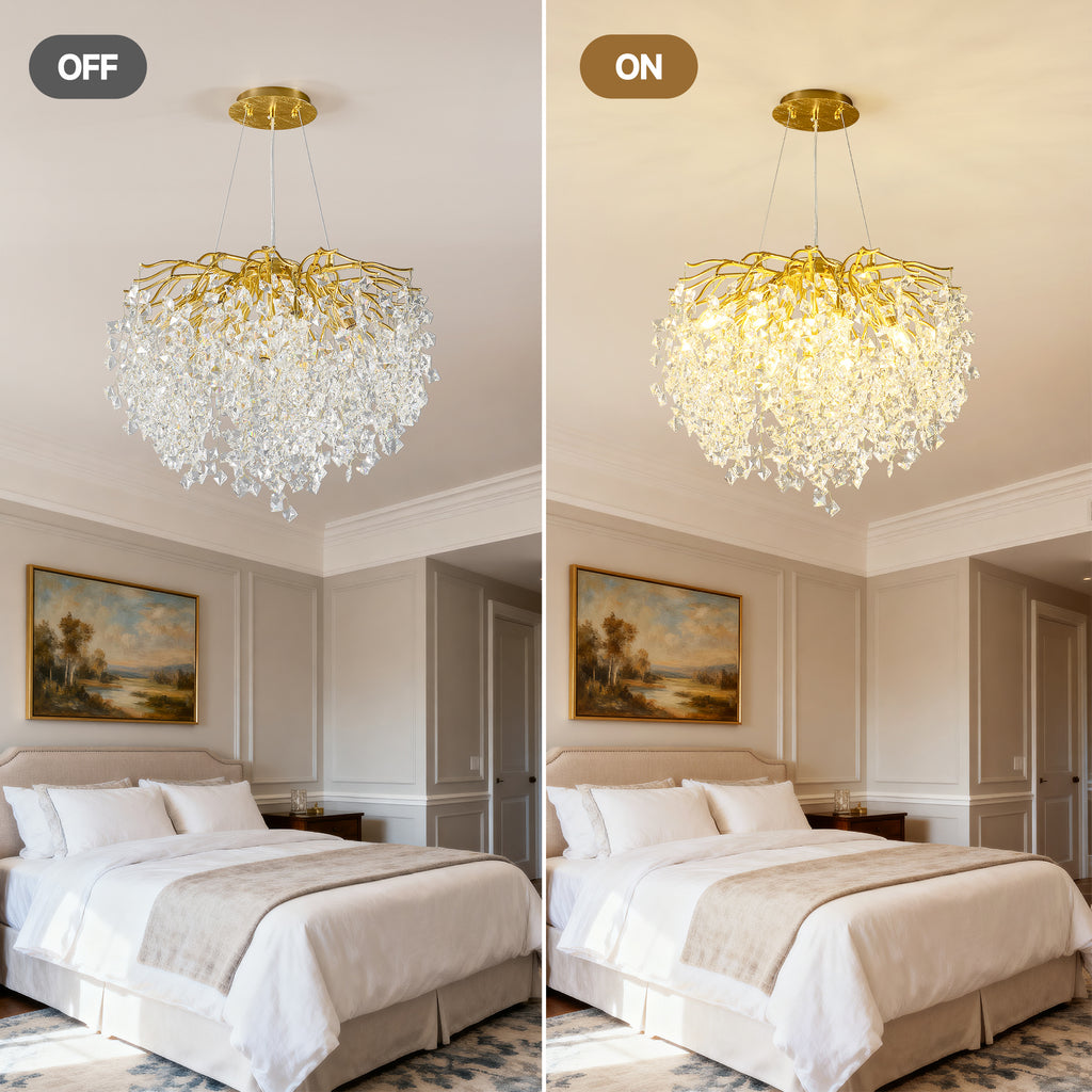 • Modern Tree Branch Crystal Chandelier: The surface of the chandelier is completed by metal plating process, corrosion resistance, rust prevention, and easy installation. The gold stems are thickened and encrypted, and the branches can be adjusted manually. Sparkling crystals are strung across the branches of this light fixture. Crystal Tree branch chandelier lighting is perfect for luxury and it helps to create a luxurious and vibrant atmosphere in the room