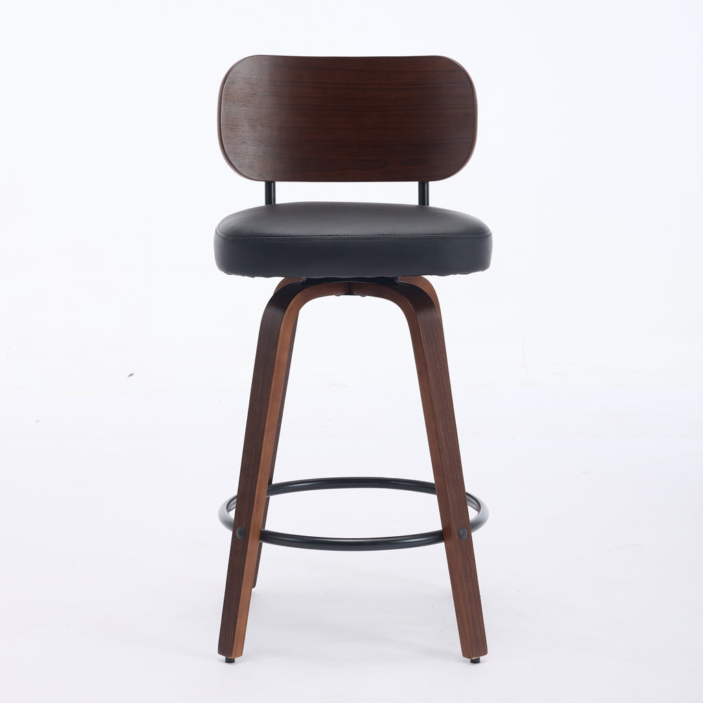 Swivel Bar Stools Set of 2, 26' Upholstered Faux Leather Counter Height Barstools with Walnut Back & Bentwood Legs, Mid Century Modern Bar Chairs Island Stools for Kitchen Counter, Black PU, SW1864BK