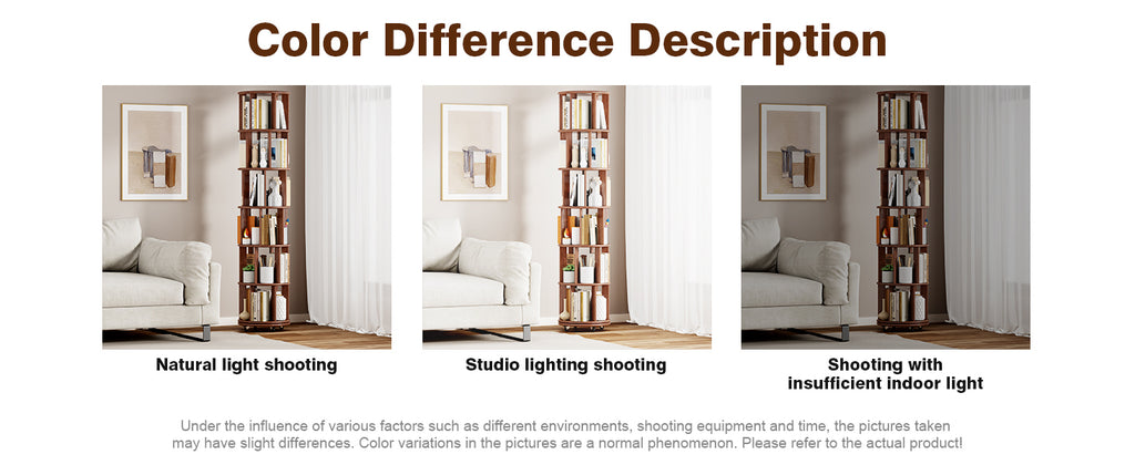 • Upgraded Hardware Tools - Effortless Assembly: Enjoy exceptional convenience with our rotating bookshelf. We thoughtfully provide a detailed installation guide, along with upgraded hardware tools, to fully support your DIY assembly, ensuring the entire process is smooth and convenient! Moreover, the included wheels can be flexibly chosen for installation according to your actual needs, offering great flexibility and allowing you to use the bookshelf exactly as you wish