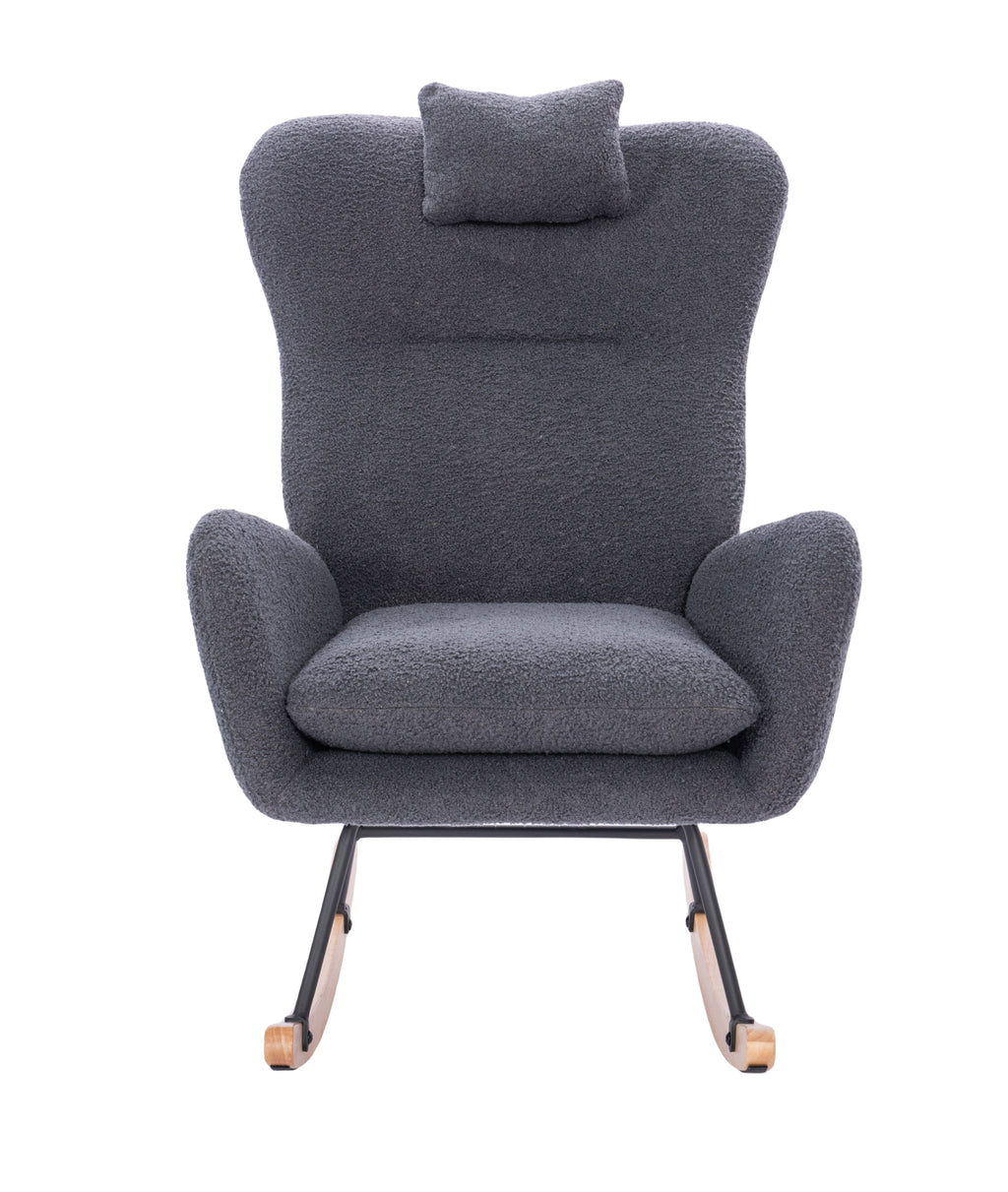 Teddy Upholstered Nursery Rocking Chair for Living Room Bedroom(DARK GREY Teddy)