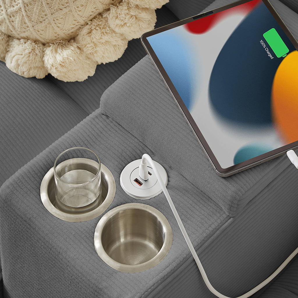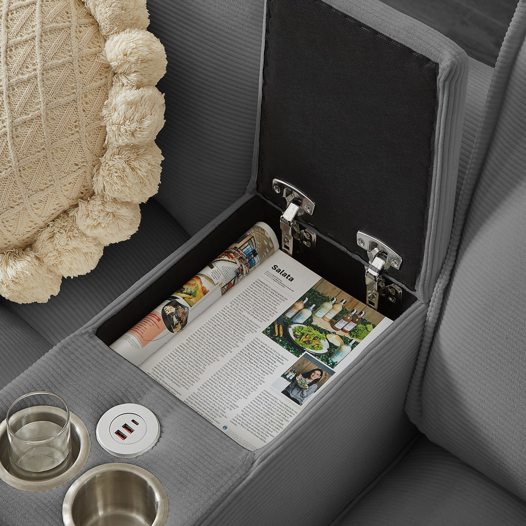 Modern Gray Corduroy U-Shaped Sectional Sofa Bed with Storage, 4-Seater, 120' Modular Design for Living Room or Apartment, Features Cup Holders and Chaise Footrests