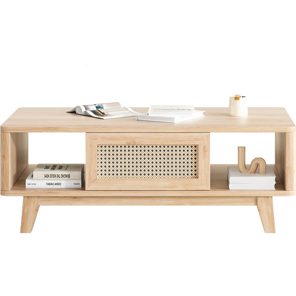 • Sophisticated Design: Featuring a wood-textured finish and rattan drawer, our large coffee table exudes elegance. This stunning piece adds a touch of refinement to your living space, creating a harmonious and organized ambiance in your living room.