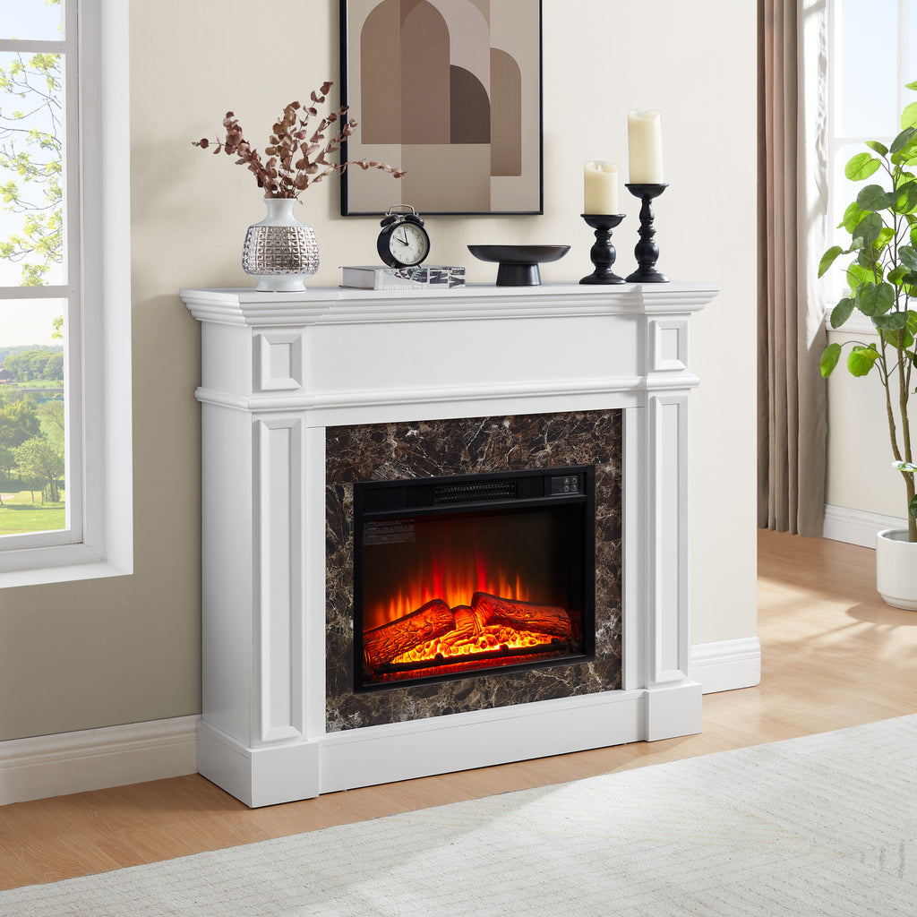 Electric Fireplace with Mantel, Fireplace Mantel, Fireplace Heater Freestanding, Realistic Stacked Stone Surround with Remote Control Timer LED Flame, White, 45.66'W*11.8'D*40'H