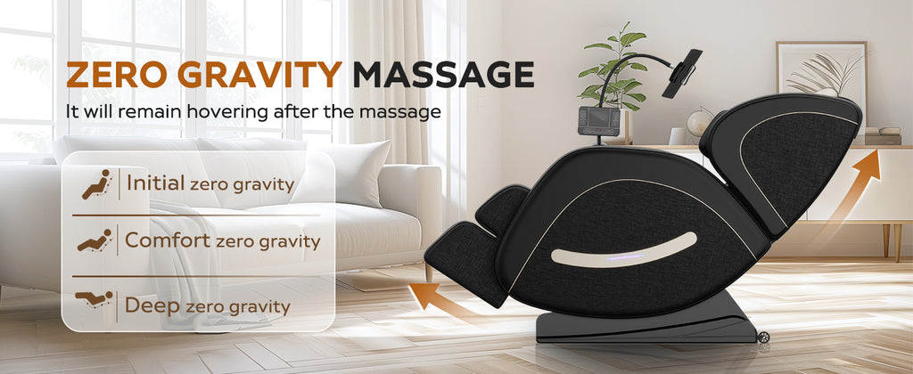 - [Zero Gravity Mode] Activate the 'zero gravity' mode with the press of a button, allowing you to recline fully with your feet elevated above your heart. This position reduces strain on your heart and enhances blood circulation. As the chair reclines, the armrests adjust in sync with your body, ensuring your hands continue to enjoy the massage. Even after the massage ends, the chair remains in zero gravity mode, letting you relax and prolong the soothing experience.