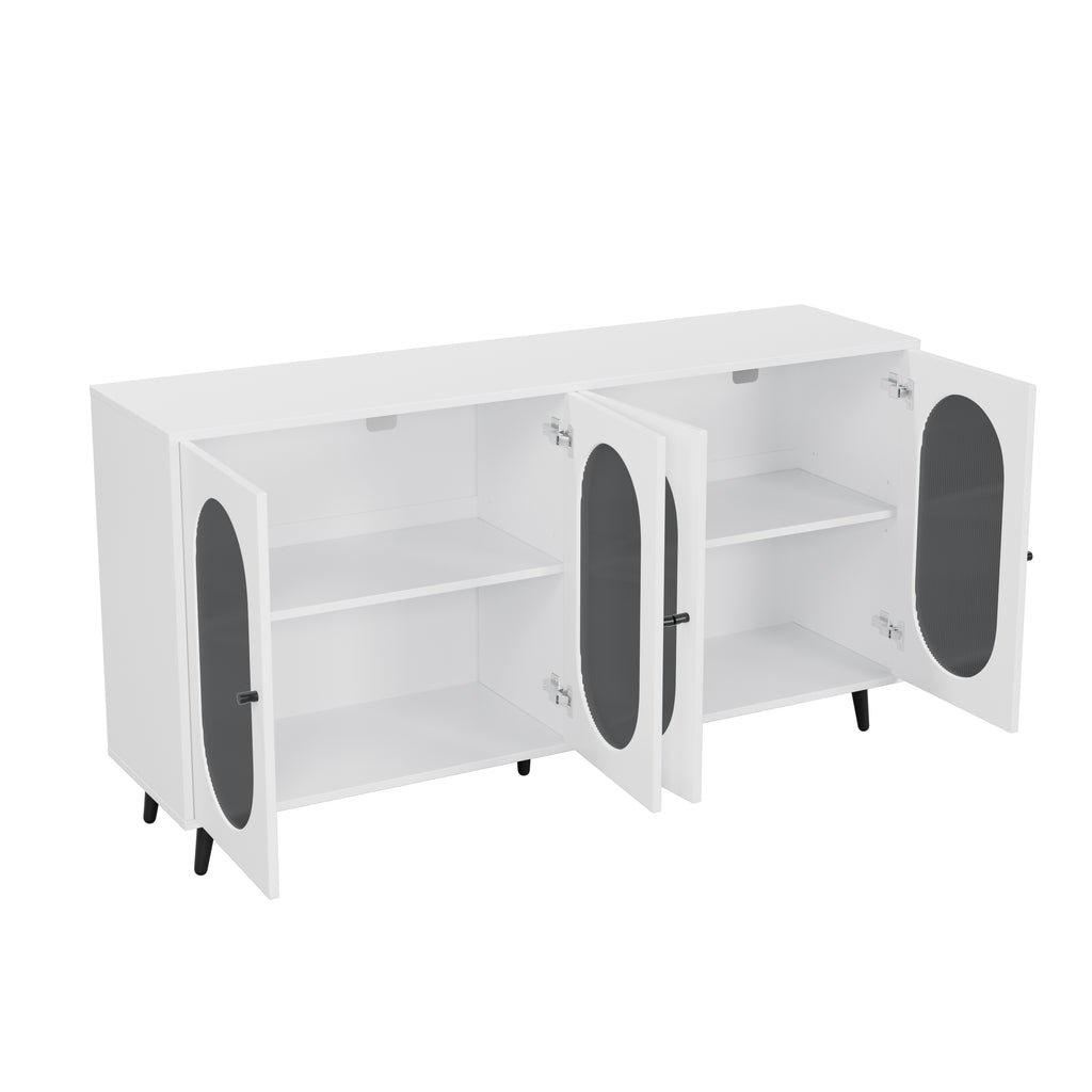 The sideboard has four closed big cabinets, the use of space is diverse, provides spacious storage for daily essentials etc. The shelf inside the door can be detached for fitting items of varied sizes.