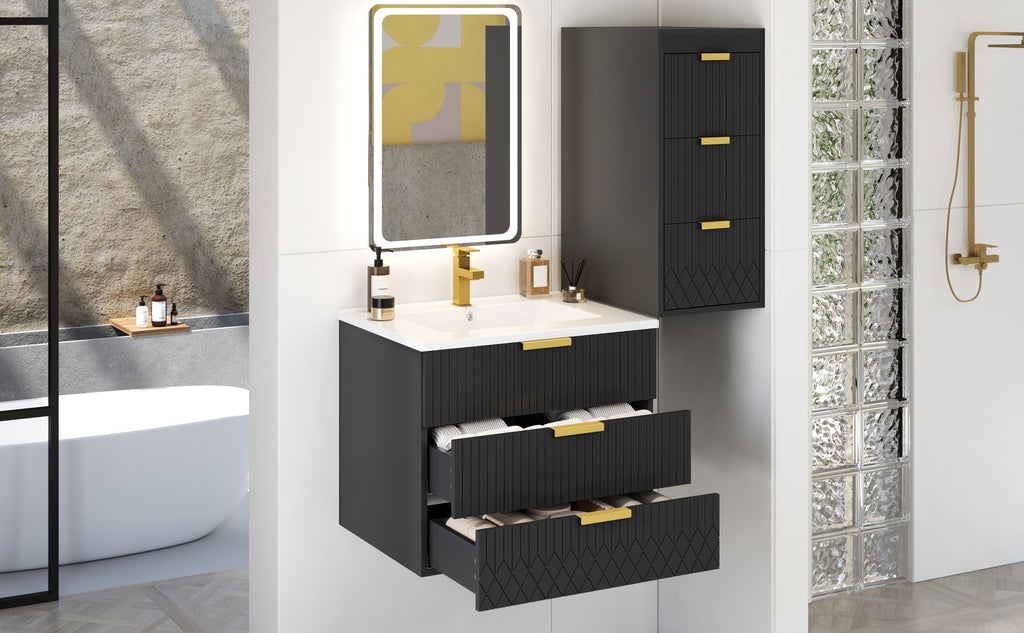- [Intelligent Space-Saving Design] Specifically conceived for modern living, the wall-mounted design is a game-changer for optimizing space. By elevating the cabinet off the floor, it creates a visual openness that makes any bathroom, especially a compact one, feel significantly larger and less confined. The floating effect contributes to an airy, contemporary aesthetic while offering the invaluable benefit of making floor cleaning a effortless task, as there are no obstacles to work around.
