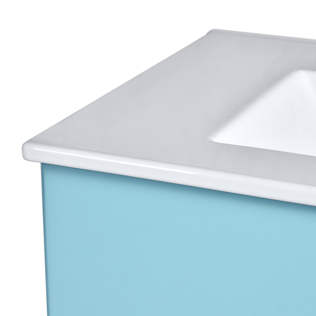 - [Elegant Appearance]Carved craftsmanship and pure blue cabinets present you with a feast of beautiful perspectives. Washing up in front of such a bathroom cabinet can wash away your fatigue from the day.