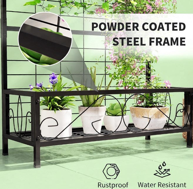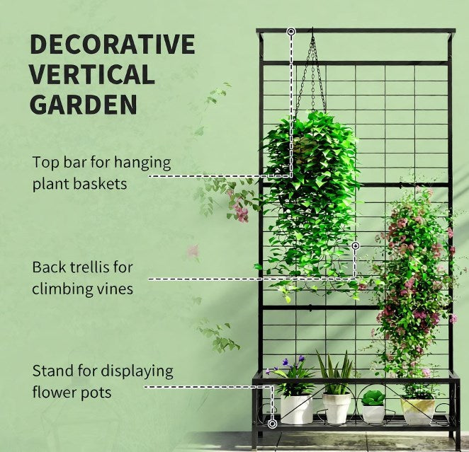 - - Vertical Gardening: Standing at an impressive 74' tall, this metal plant stand includes a 68' trellis for climbing vines, flowers, and decorative plants. Add vertical charm and a touch of nature's beauty to your garden, patio, or balcony