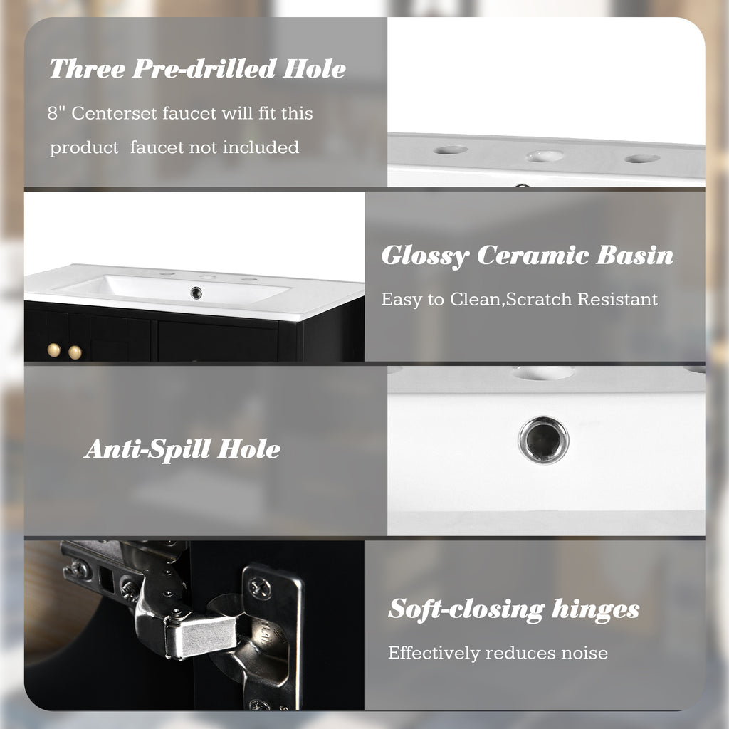 - [ Multi-Purpose Cabinet & Concealed Storage ] Are you looking for stylish and functional storage solutions for your bathroom? Our bathroom vanity provide ample space for all your toiletries and bathroom essentials. The combination of the cabinet body and the drawer perfectly stores all kinds of bathroom products and keeps the necessities away from water stains and dust. Soft-close doors and drawer fronts feature a water-resistant paint finish for durability.