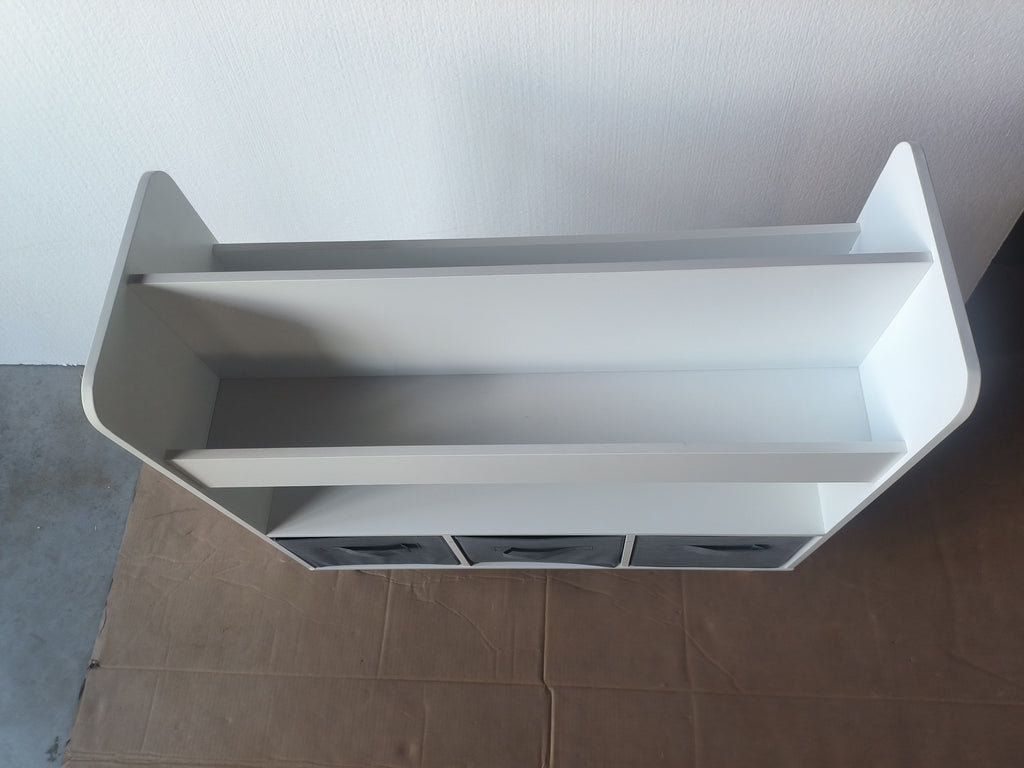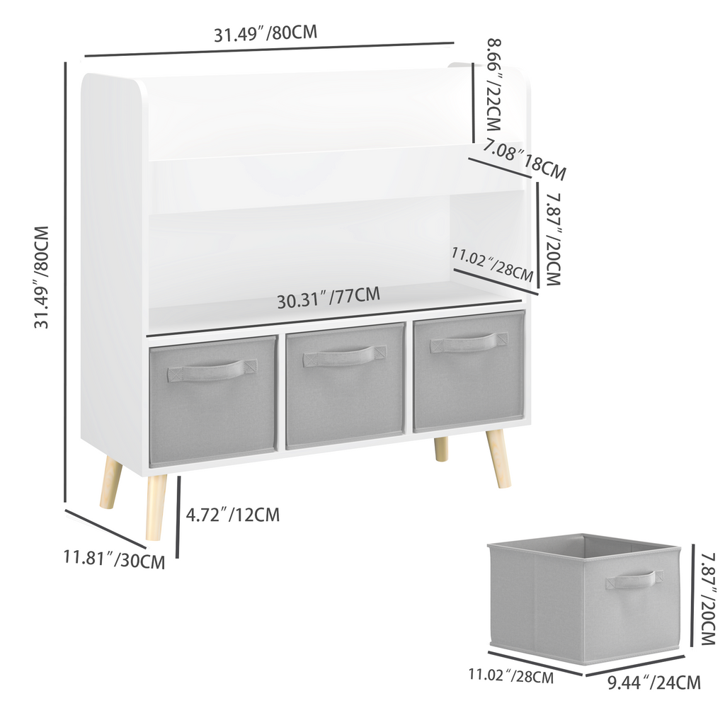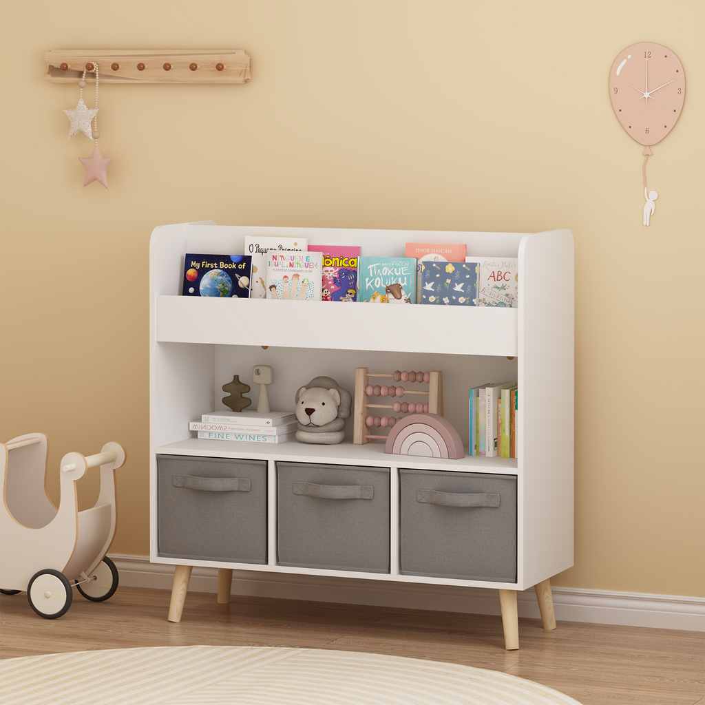 • 2. Ample Storage Space:Features 4 open book display shelves and 3 removable fabric bins—perfect for storing storybooks, coloring books, toys, and other small items in one organized place.