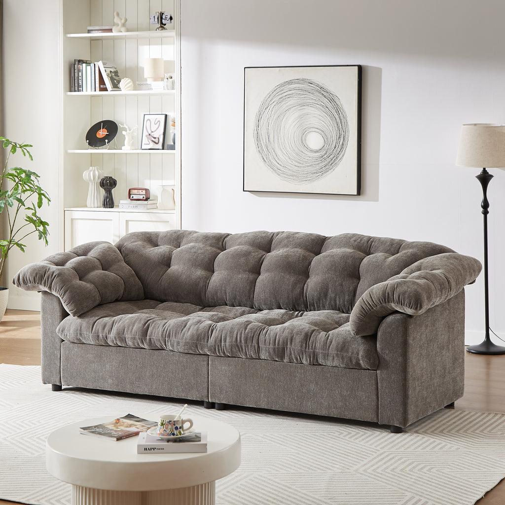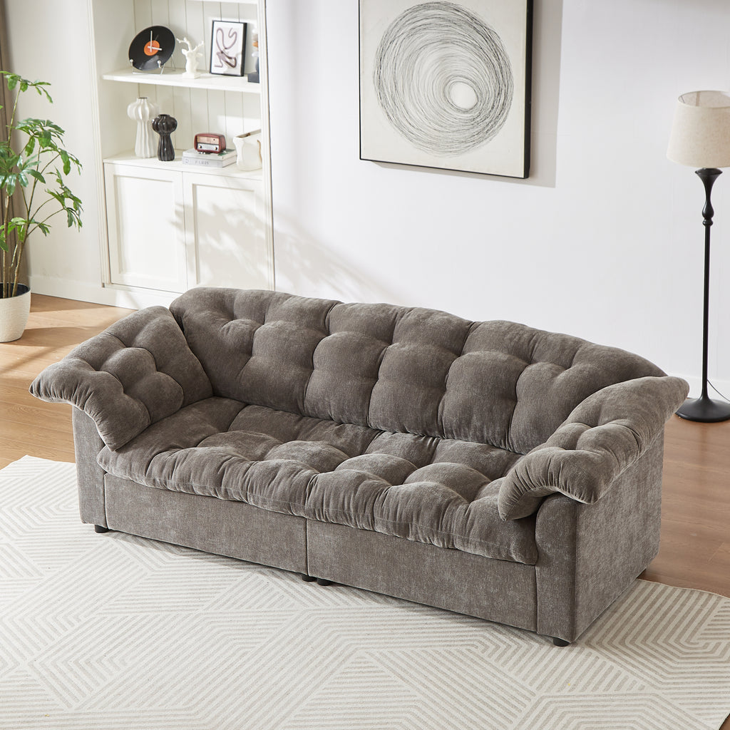 99.2' Chenille Modern Comfort Deep Seat Sofa, Upholstered Fluffy Cloud Sofa Suitable for living rooms, bedrooms, offices and apartments, grey