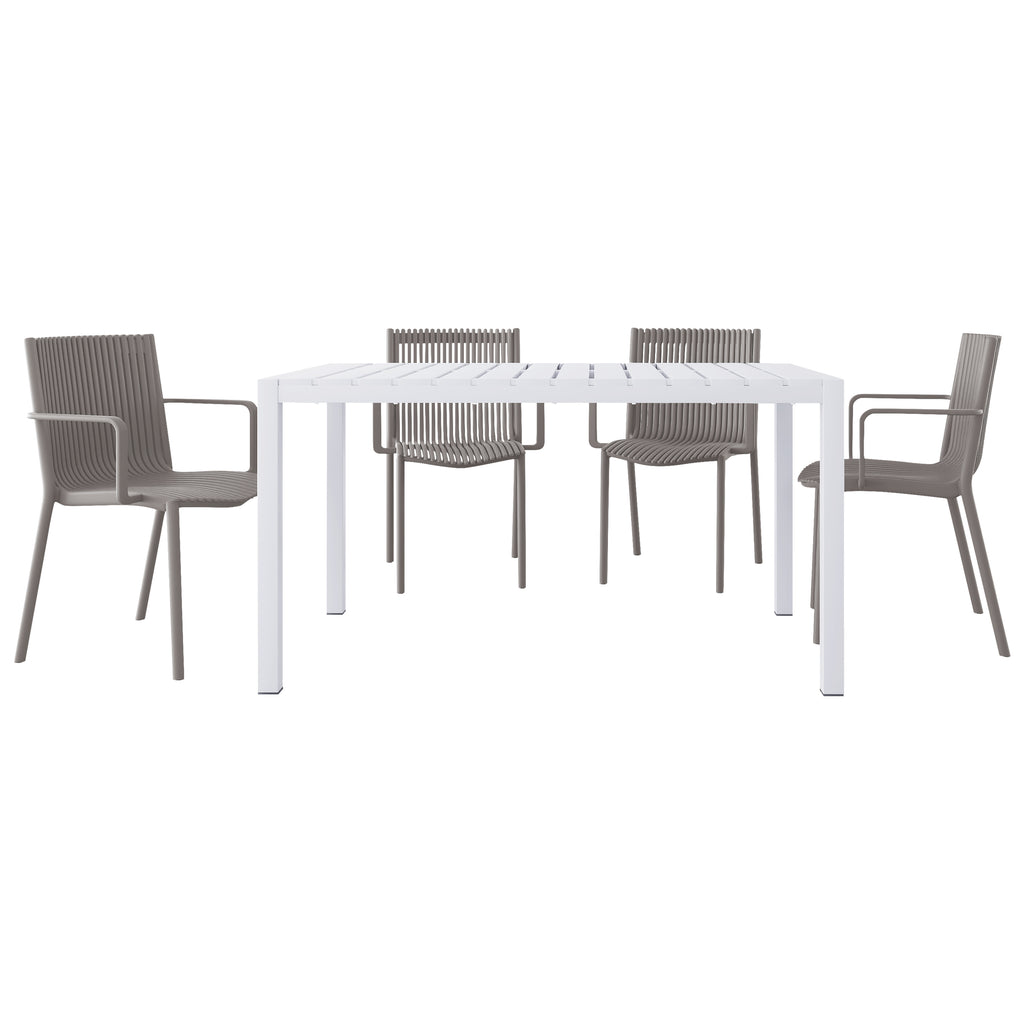 Four pcs Modern Stackable Plastic Armchair Matched with 55-Inch White Long Table,Warm Grey/White21.26*20.08*31.5(in) /55.12*31.5*29.53 (in),pp,metal