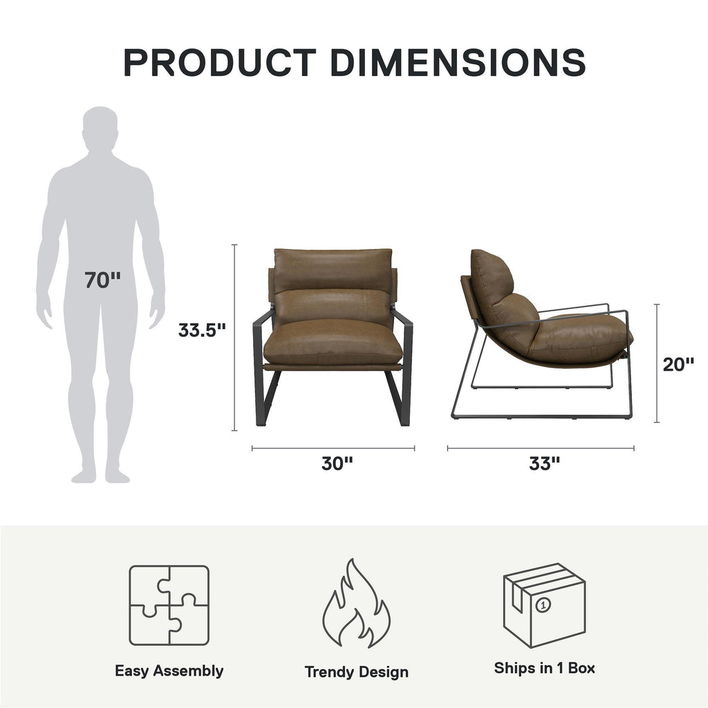 - Sink into Comfort: Enjoy low-slung seating and contemporary angles with our sling-style metal frame accent chair, featuring a single-piece seat and back cushion filled with plush foam for ideal firm support and upholstered in easy-care faux leather fabric-