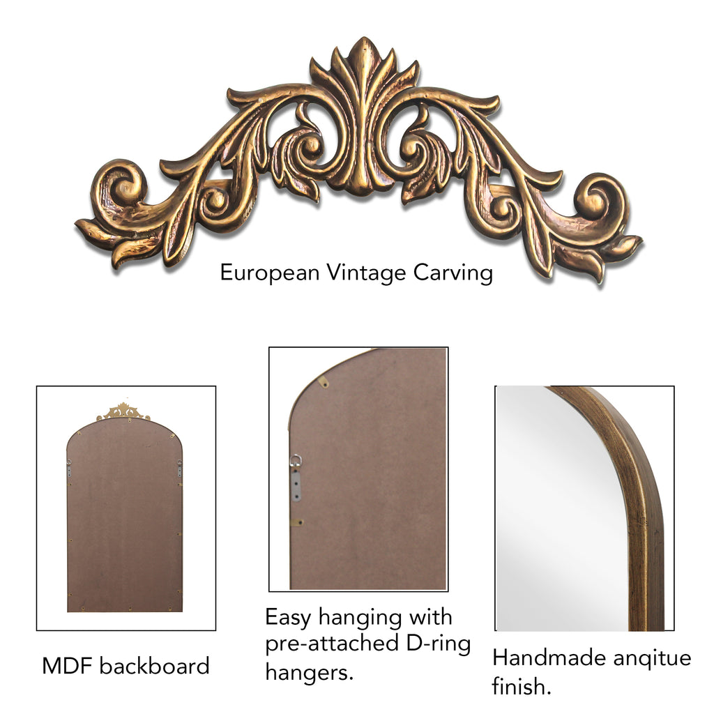 43x24 Inch Ornate Arch Wall Mirror Metal Framed Mirror