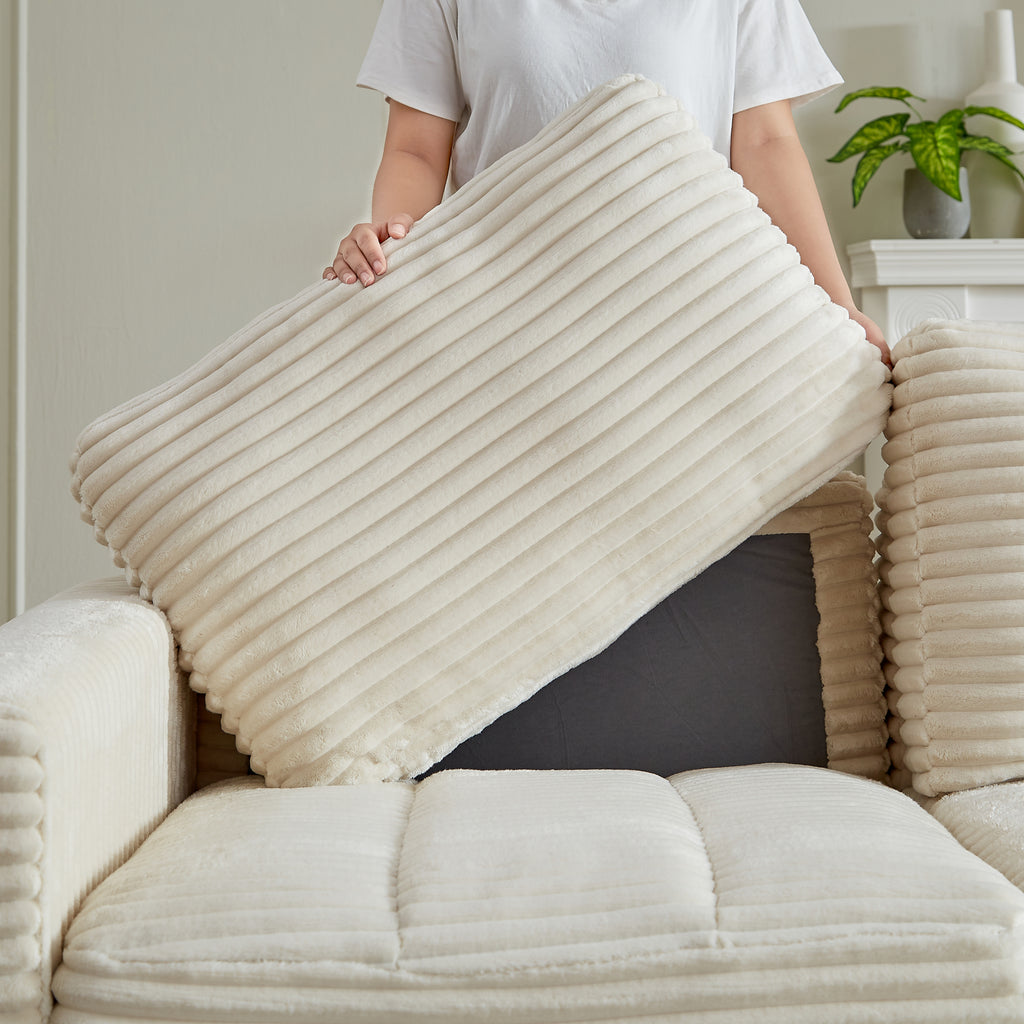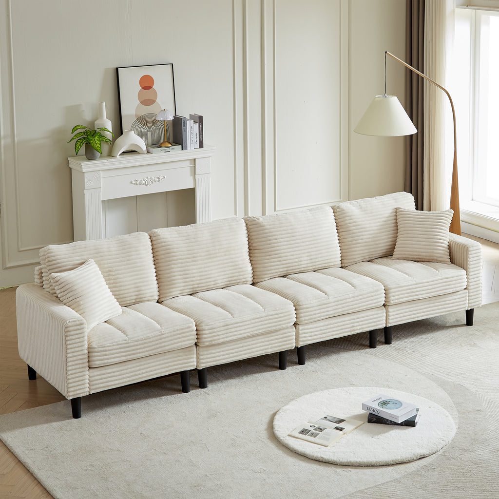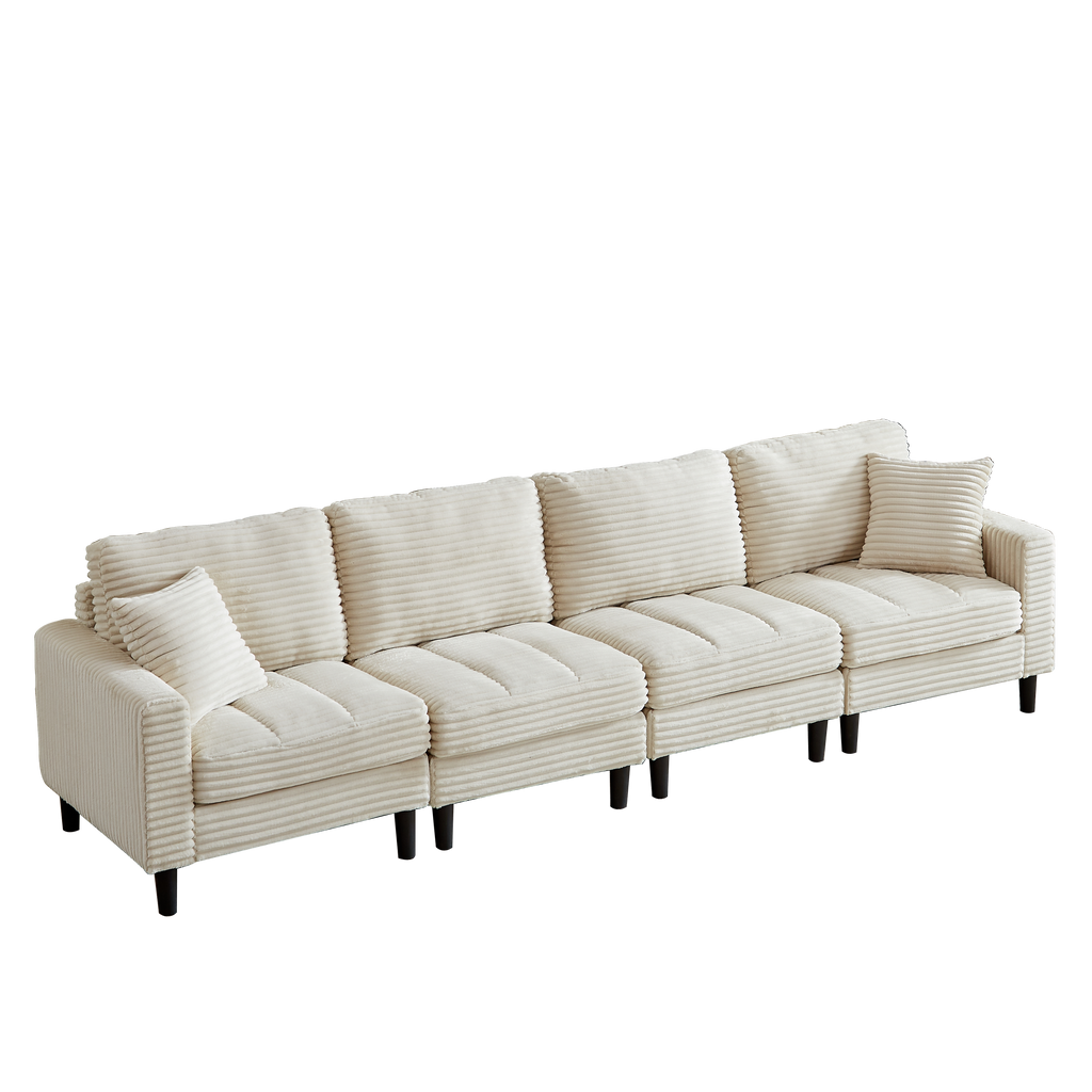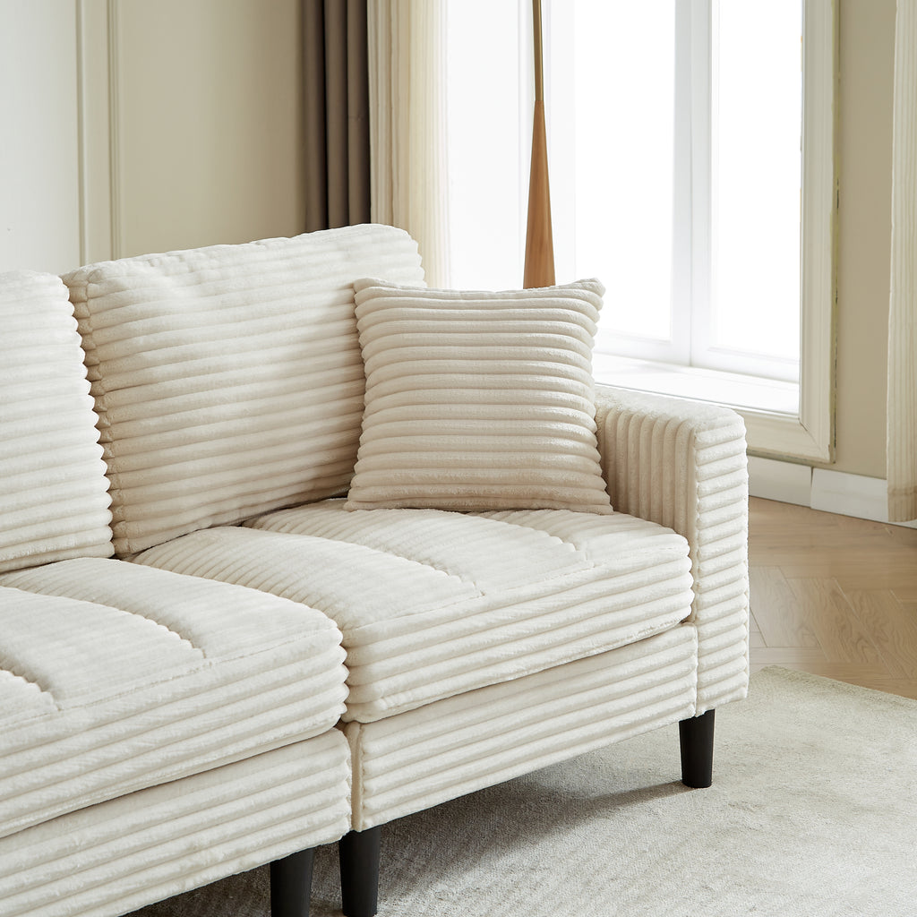 • This living room combo sofa is made of corduroy and filled with thick high-density foam, providing superb comfort and support for you, your family and guests to enjoy a wonderful day and night. The sofa comes with 2 pillows for extra support.