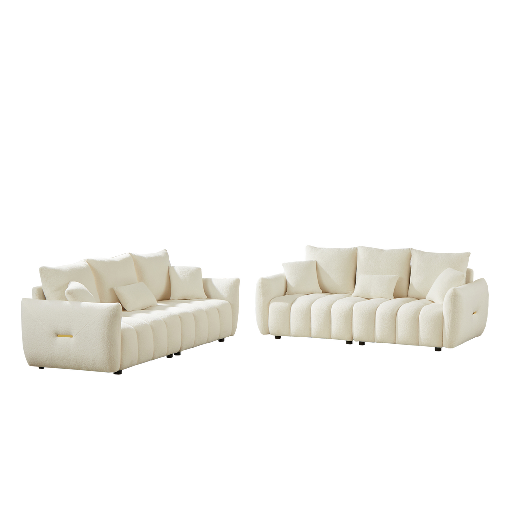 3 Seater + 3 Seater Combo Sofa Modern Living Room Sofa, Teddy Sofa, Wooden Frame, 6 Cushions, Apartment Sofa Furniture