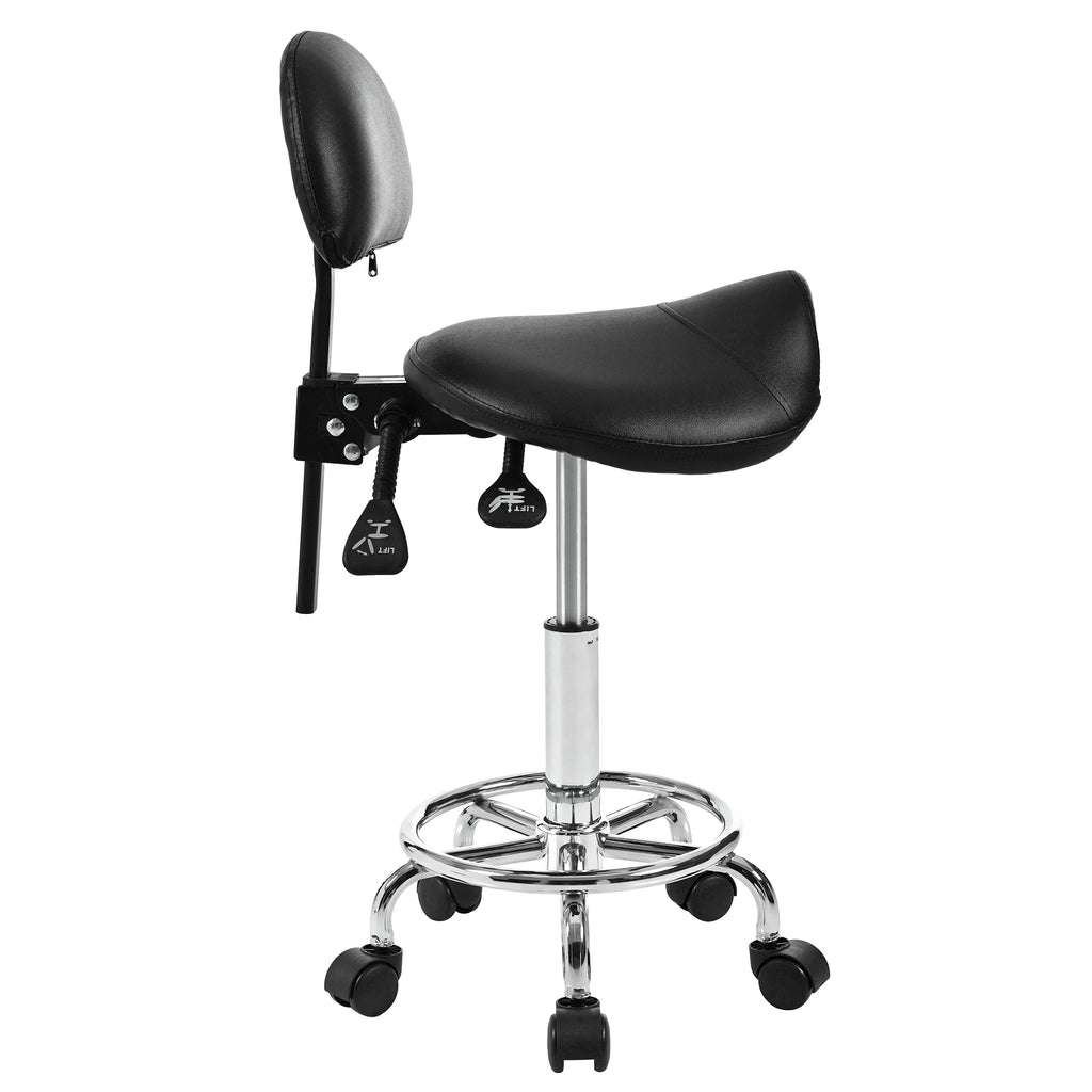 Saddle Stool with Back Support, Rolling Stools with Foot Rest, Ergonomic Adjustable Stool with Wheels, Backrest Adjustable Height & Angle for Salon Spa Tattoo Massage Swivel Stool Chair.(N753P243053B)